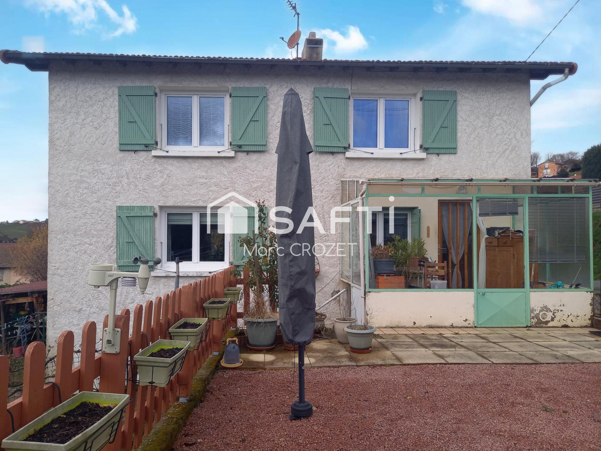 Située à Cours (69470), dominant la ville, avec une vue dégagée, cette maison bénéficie d'un environnement calme. À proximité se trouvent toutes les commodités.