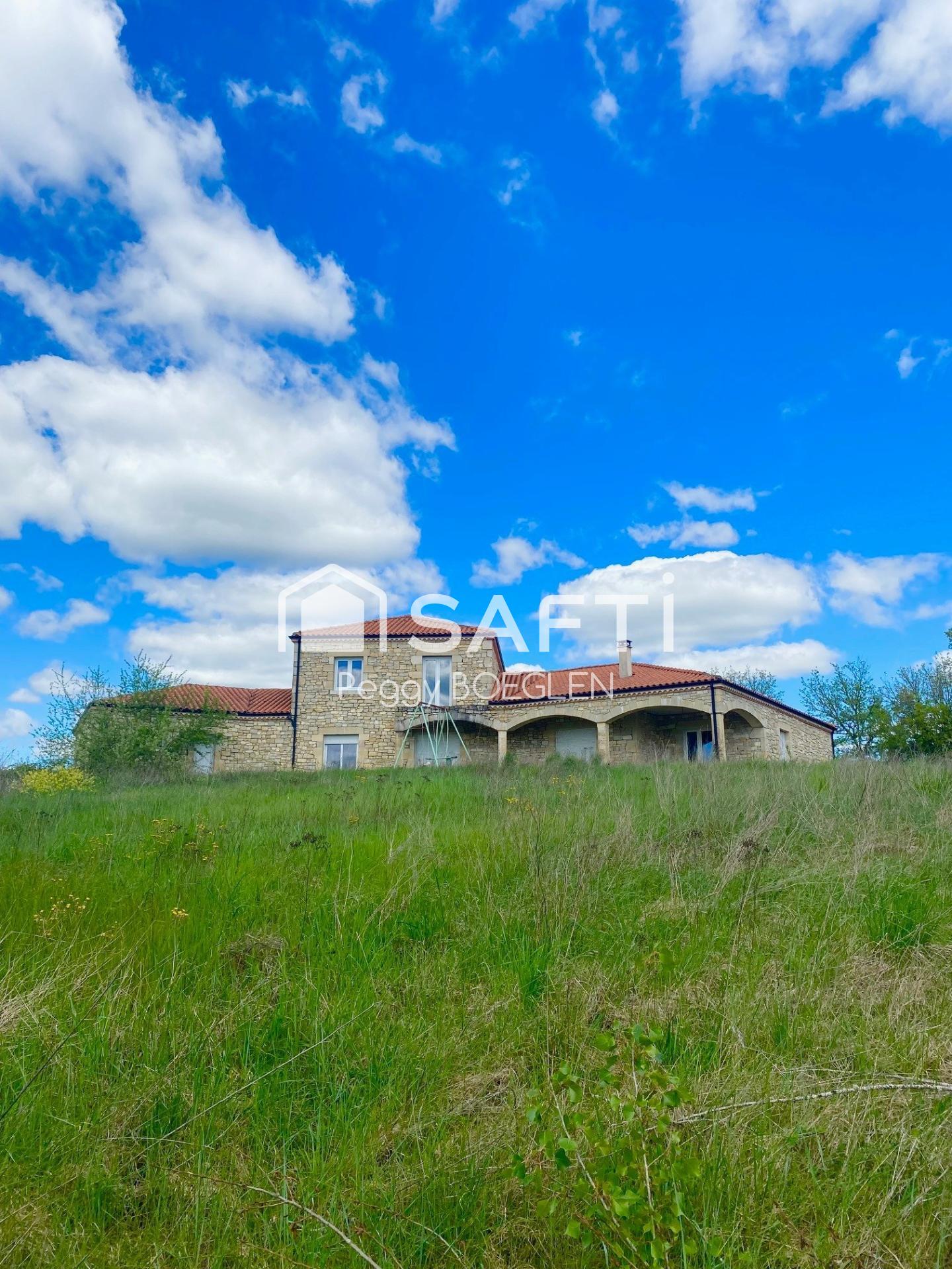 Située à Crayssac (46150), cette maison ORIGINALE ET UNIQUE bénéficie d'un cadre idyllique en pleine campagne avec un grand terrain de 10000 m².