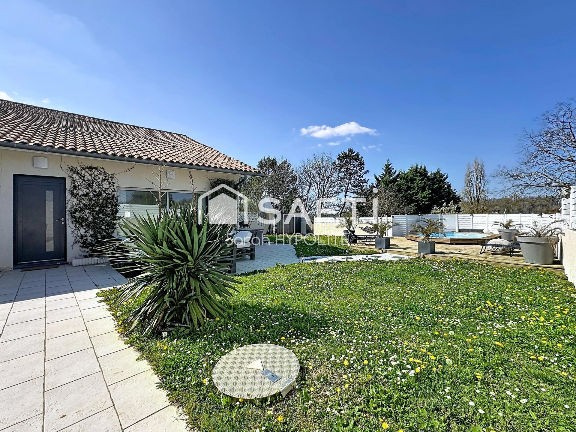 Implantée sur une parcelle de 616 m² entièrement clôturée, la maison bénéficie d’un extérieur soigné avec piscine, ainsi que de deux terrasses parfaitement exposées, idéales pour profiter des beaux jours en toute tranquillité.