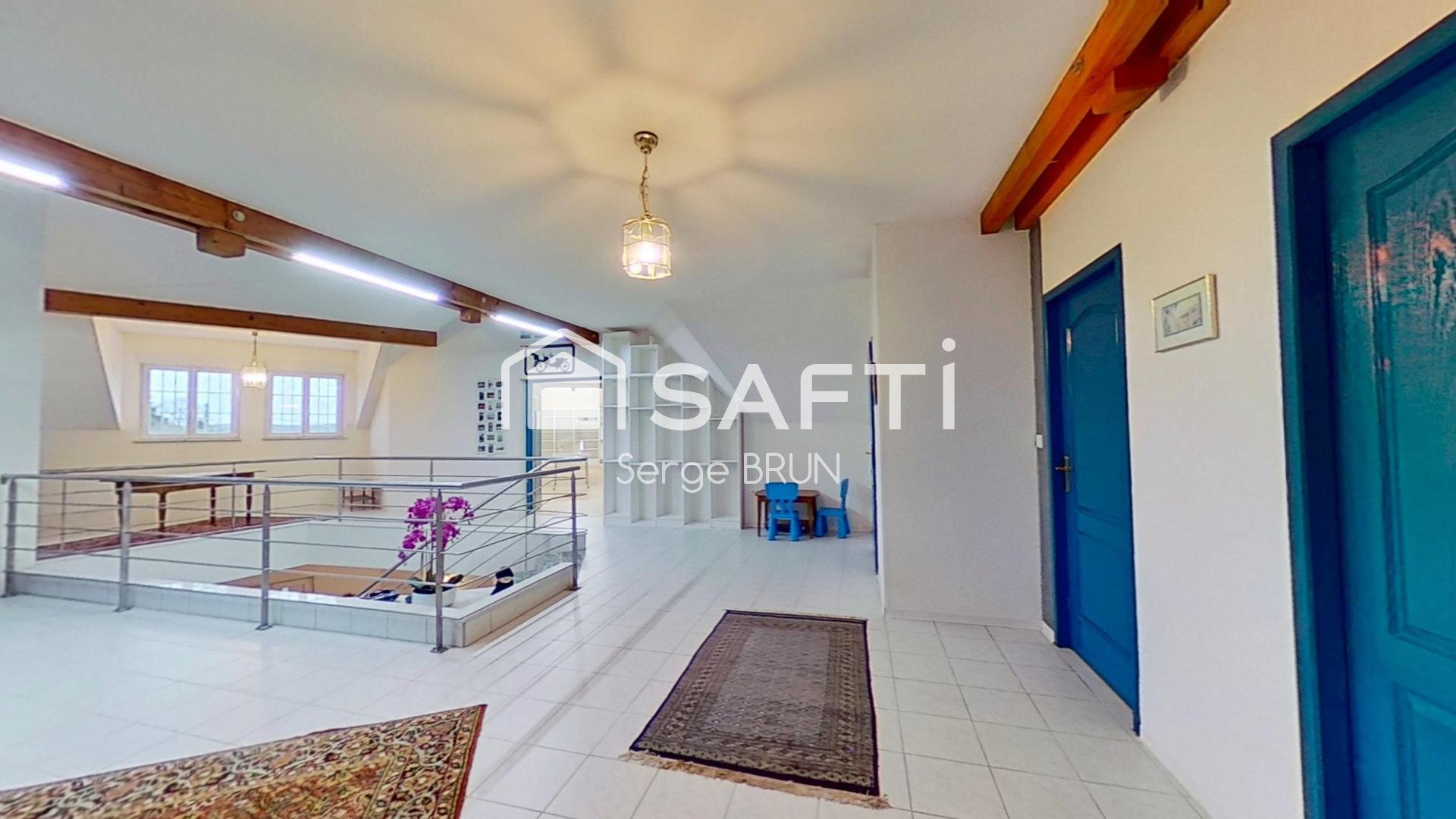 Cette maison individuelle de 488m², construite en 2002 sur un terrain de 1600m², offre un cadre spacieux et confortable. Avec 3 niveaux, dont le rdc en accès PMR, un Sous-sol de 500m² avec une hauteur de 3,70 m pouvant accueillir 10 véhicules.