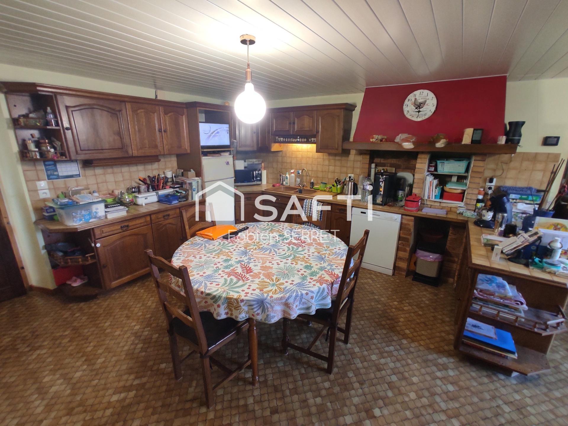 Elle se compose au rdc, d'une entrée avec placards, une arrière cuisine, une grande buanderie, une cuisine de 23m2, un salon avec insert de 44m2, une chambre et un wc.