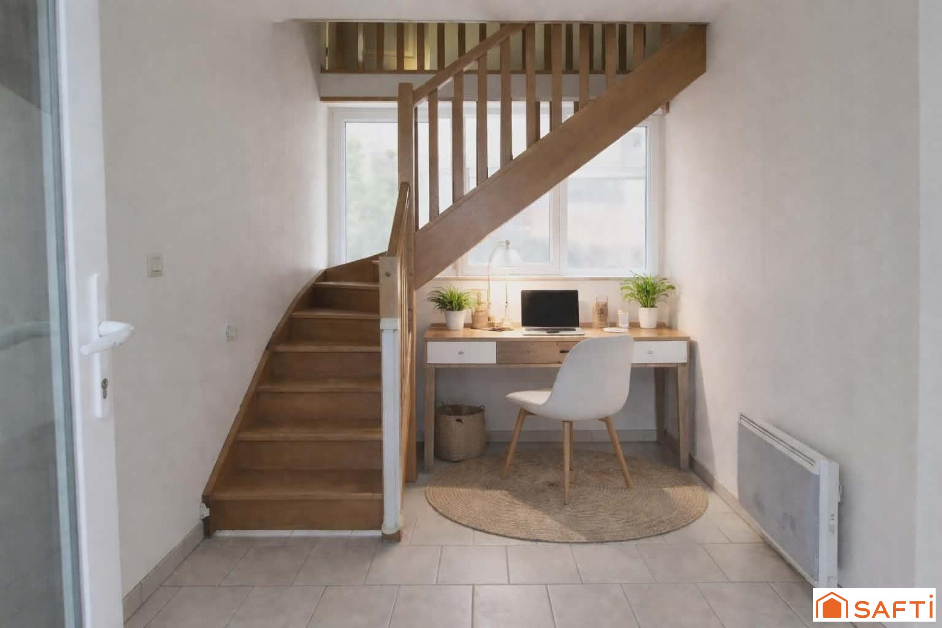 Au rez-de-chaussée, vous trouverez une belle entrée traversante avec un dégagement pouvant faire office de bureau, une chambre confortable, un toilette indépendant, ainsi qu’un couloir menant à une vaste pièce de vie lumineuse. La cuisine ouverte aménagée, s’intègre parfaitement à l’ambiance chaleureuse de la maison. Une buanderie indépendante complète cet espace de plain-pied.
