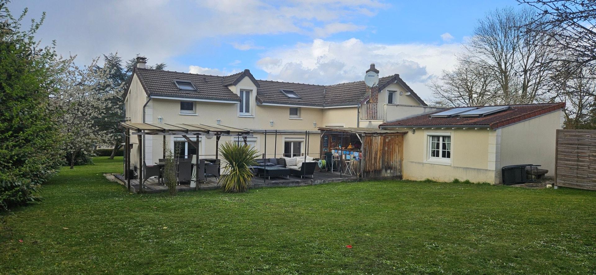 Maison atypique de 1952 rénovée et son extension neuve de 2011 d'une surface de 200 m2 habitable, au rez de chaussée on a une entrée directe sur un grand salon/séjour lumineux, une cusine toute équipée et aménagée et un office/buanderie, une salle d'eau avec hammam, wc séparé, une grande chambre avec placard, local technique, puis à l'étage un palier mezzanine avec un espace chambre ouverte, un bureau, une petite piece/chambre, salle d'eau et wc, une suite parentale avec salle bain baignoire/douche/lavabo/wc et son dressing. Petite dépendance de 25 m2 séjour/cuisine et chambre, wc avec salle d'eau (idéal pour famille et location airbnb), puis un garage de 20 m2 actuellement local professionnel, un abris de jardin, 2 terrasses l'ensemble sur un terrain clos et arboré de 2112 m2. Emplacement idéal à 2 pas de la forêt de Fontainebleau, 5 kms du Golf de Cély, 40 kms de l'aéroport d'Orly et 50 kms de Paris. Visite virtuelle nous consulter