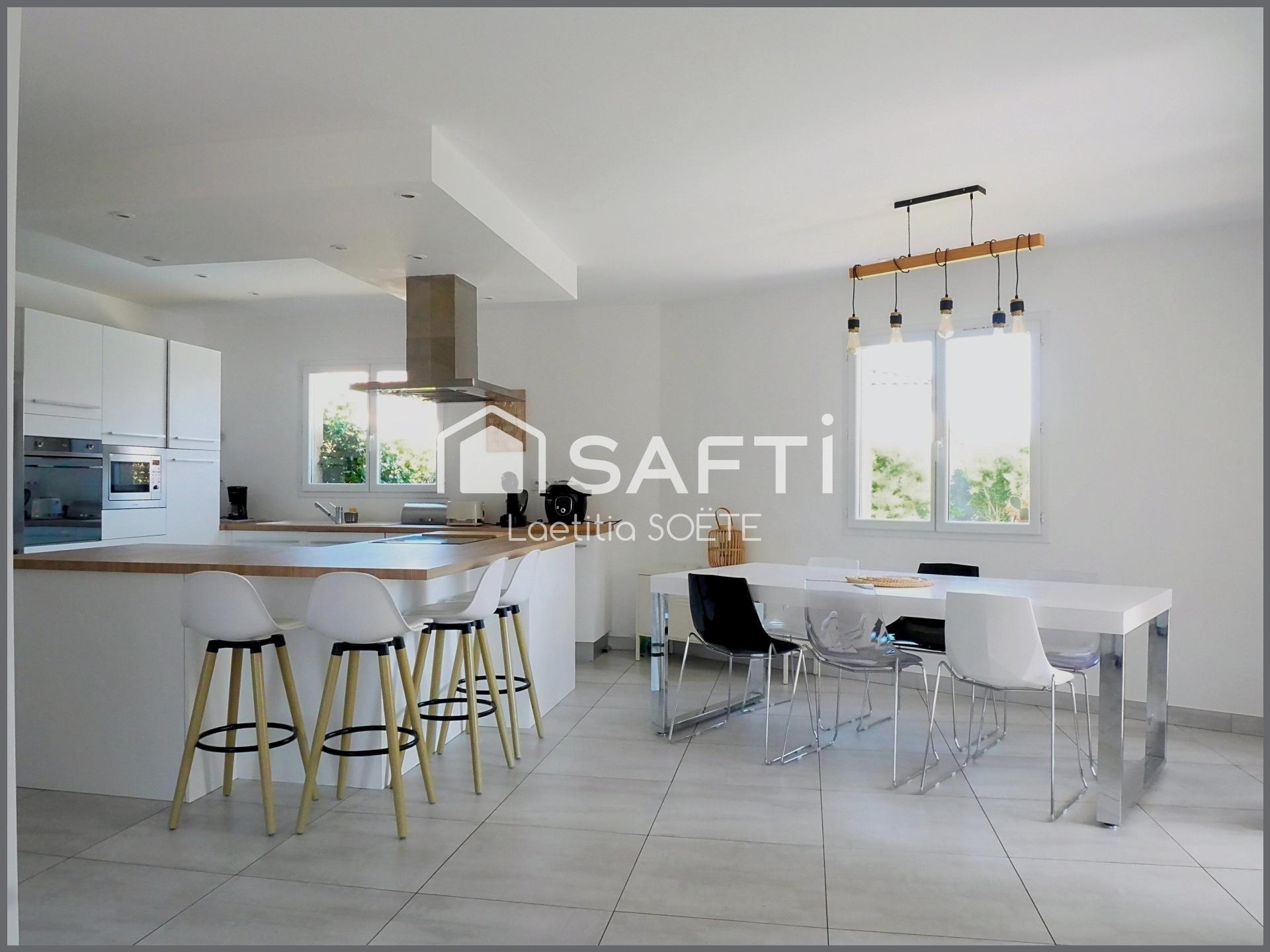 À l'intérieur, cette maison comprend 4 chambres dont une suite parentale avec dressing et salle d'eau, un bureau, une seconde salle de bain et une buanderie. Les sols en carrelage et parquet offrent une ambiance chaleureuse. Ainsi, cette maison spacieuse et en excellent état promet un confort de vie optimal pour toute la famille.