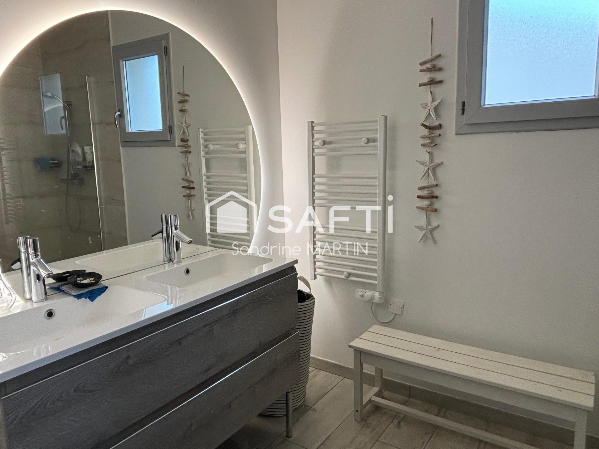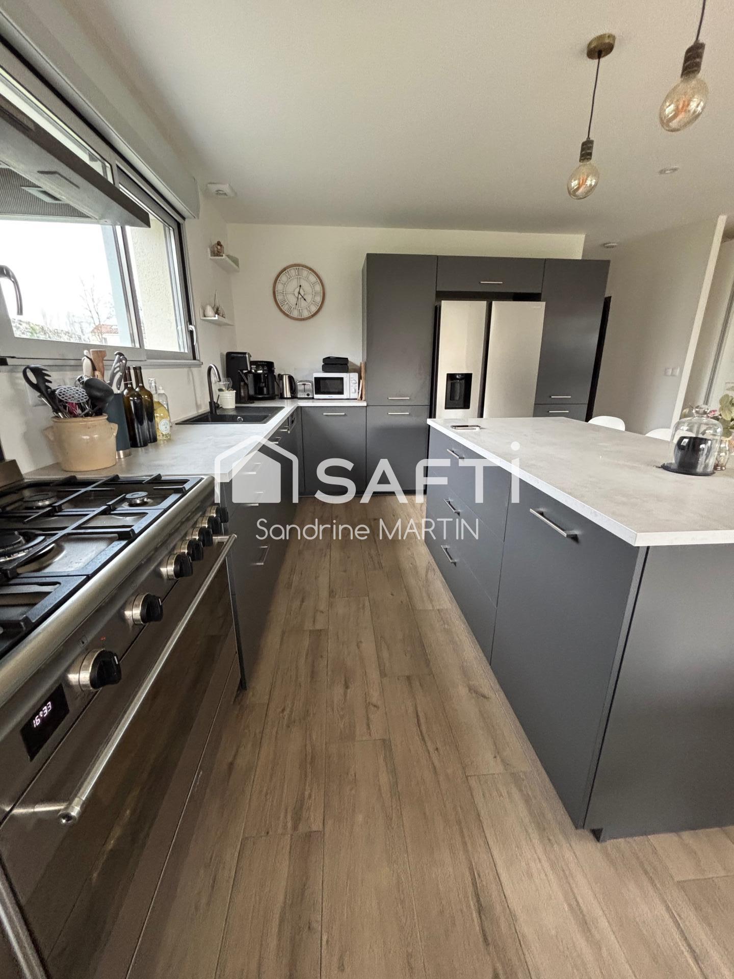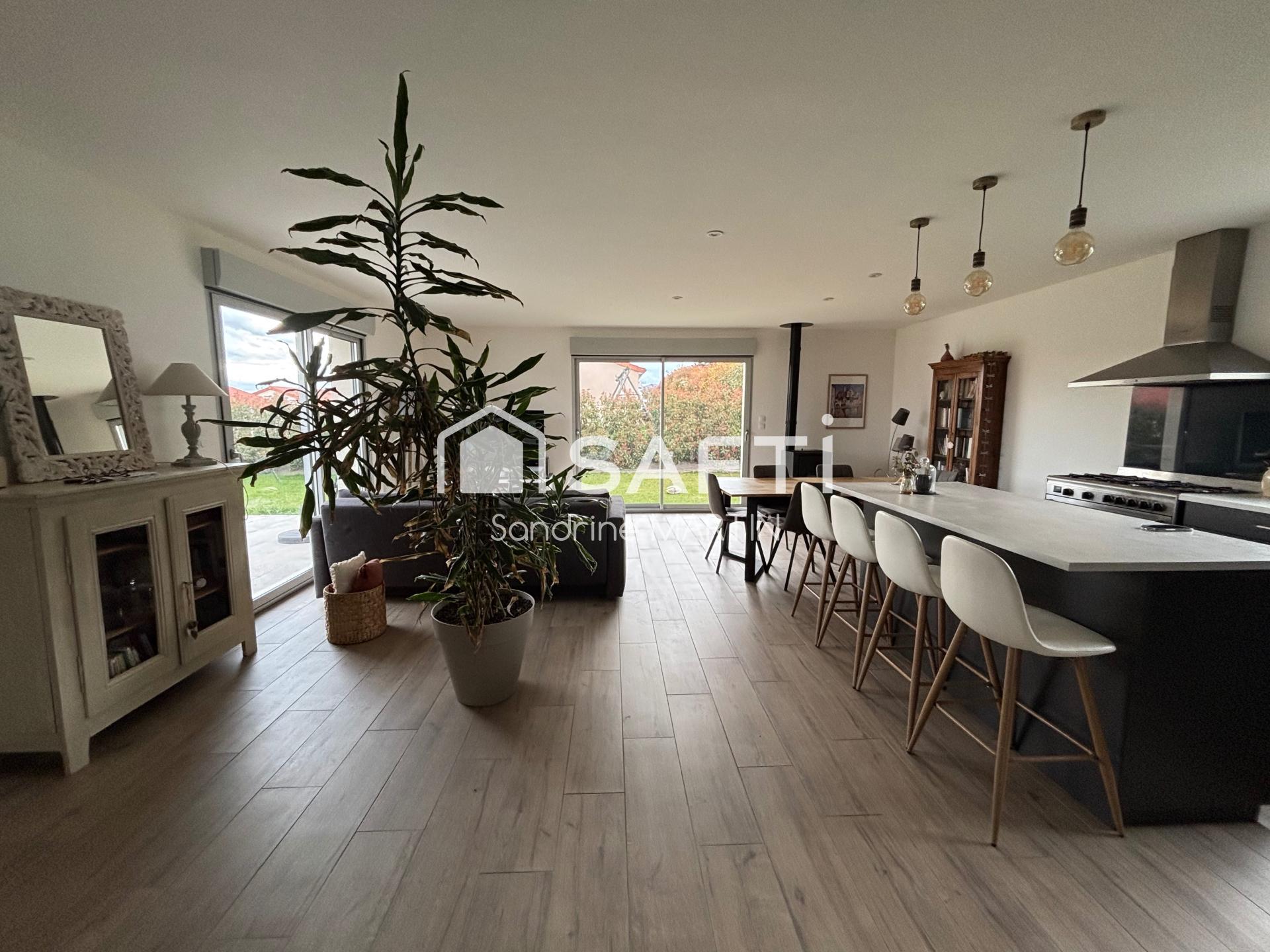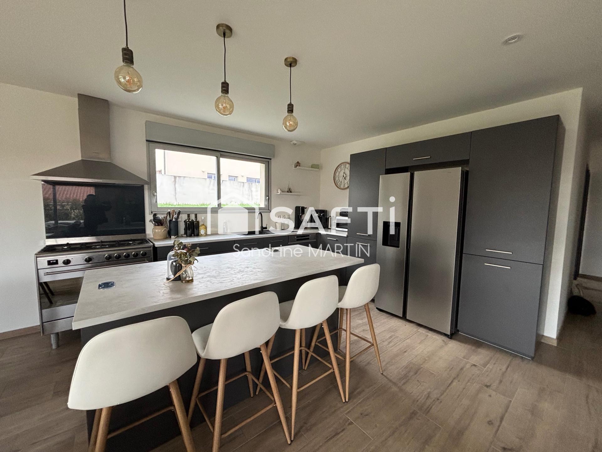 Je vous présente ce plain pied de 2023 d'une superficie de 98m2, sur une parcelle de 571m2, elle se présente ainsi: 1 pièce de vie avec placard ouverte sur la cuisine aménagée et équipée (frigo américain, lave-vaisselle, piano de cuisine, hotte) puis un couloir mène à une buanderie, 1 wc , 1 salle d'eau avec douche à l'italienne et 3 chambres dont une avec un grand dressing.