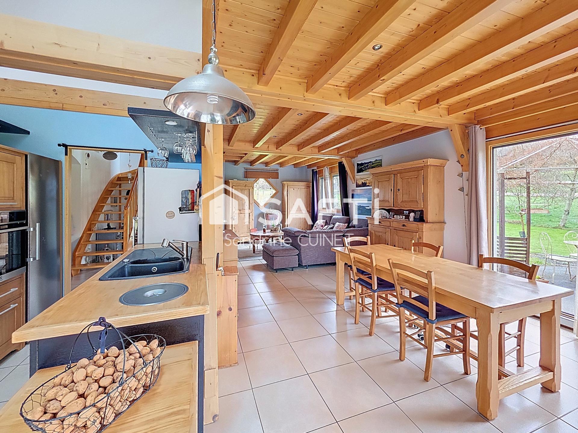 Située à Déservillers (25330) à seulement 5 minutes d'Amancey avec ses écoles et services, à 50 minutes de la frontière Suisse, cette maison contemporaine construite en poteau-poutre allie modernité, qualité de construction et d'équipement avec des matériaux soigneusement sélectionnés.