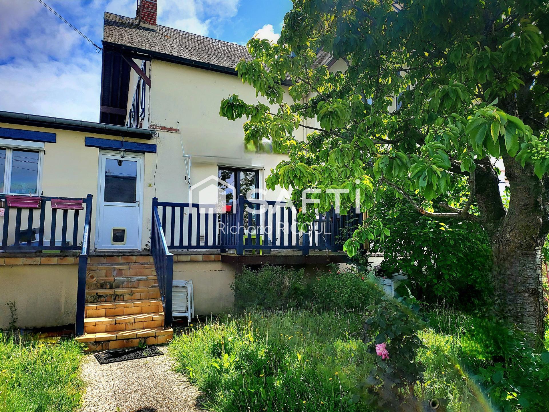 Il y a des maisons qui respirent l'histoire du lieu et celle qui m'amène aujourd'hui à vous parler d'elle, en est une; Autrefois, les quartiers Maîtres de l'usine de métallurgie de Dives Sur Mer avaient l'immense joie d'habiter ces quartiers résidentiels; Proche du centre, non loin du port et des plages tout en étant au calme, ces maisons jumelées qui se tenaient chaud, partageaient le même terrain; Elles offraient un vrai confort de vie pour la famille après le travail; RDC, 1 étage, 1 sous-sol, 1 jardin, 1 garage; Aujourd'hui, celle qui nous occupe a même été agrandie; 3 chambres, un studio au sous-sol à refaire, un atelier, une buanderie; Une cuisine, une salle d'eau, un salon, un bureau. Le RDC est surélevé et domine le jardin avec une terrasse et un balcon; On peut rentrer la voiture dans la propriété mais sincèrement, il y a toujours de la place en extérieur.