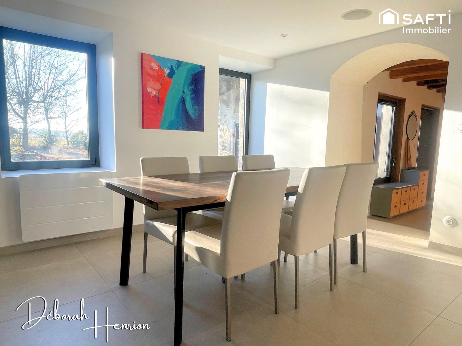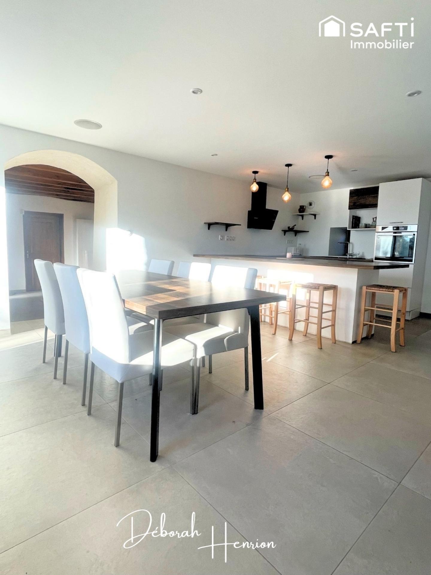Ici, l’authenticité du bâti ancien en pisé s’allie à des travaux de modernisation cohérents, créant un équilibre rare entre charme et confort. Les volumes ont été travaillés pour offrir une atmosphère chaleureuse, où chaque espace trouve naturellement sa place.