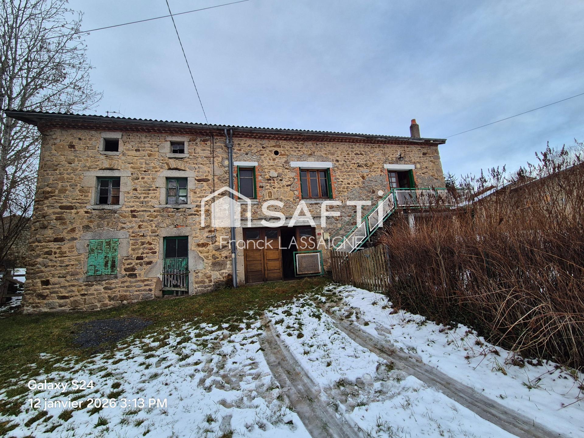 Entre Ambert et Issoire dans les Monts du Livradois dans un hameau au calme et bien exposé... Venez découvrir cette maison en pierres comprenant d'un côté une maison d'habitation avec 1 cuisine ouvrant sur un séjour, hall, 3 chambres et 1 salle de bains, grand garage... chauffage poêle à bois... Estimation des coûts annuels d'énergie du logement entre 2440 et 3340 euros. Une seconde partie attenante pouvant être destinée pour un gîte ou autres... Une visite s'impose n'hésitez pas à me contacter par téléphone... Terrain attenant de 600m²