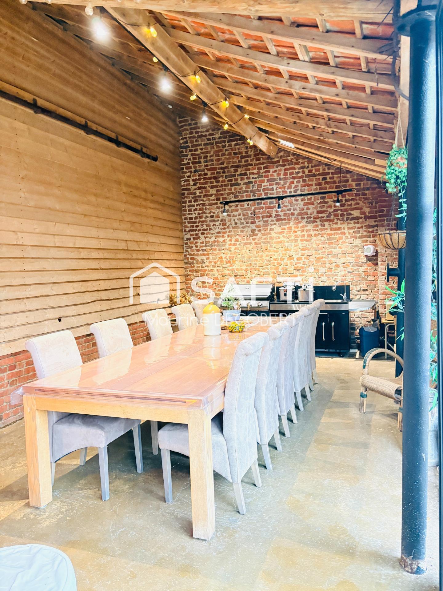 Située dans un environnement calme et verdoyant, cette belle fermette rénovée allie le cachet de l’ancien au confort moderne. Elle offre une surface habitable de 147 m² et s’accompagne de 370 m² de dépendances en excellent état, dont une salle de réception et trois garages.