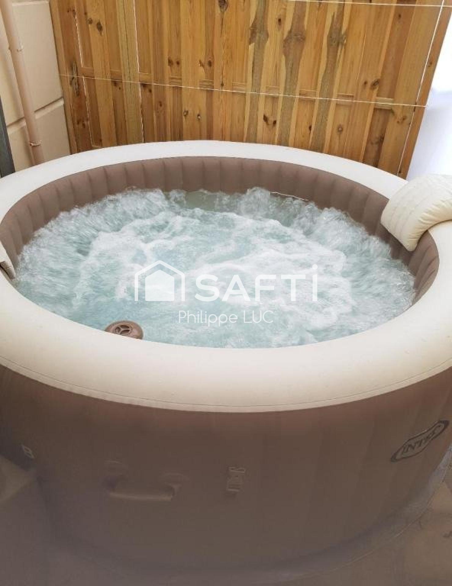 Elle vous offre au rez-de-chaussée 3 entrées séparées qui mènent à un loft PMR (personnes à mobilité réduite) tout équipé de 50 m2, un second logement style loft tout équipé de 50 m2 avec jacuzzi.