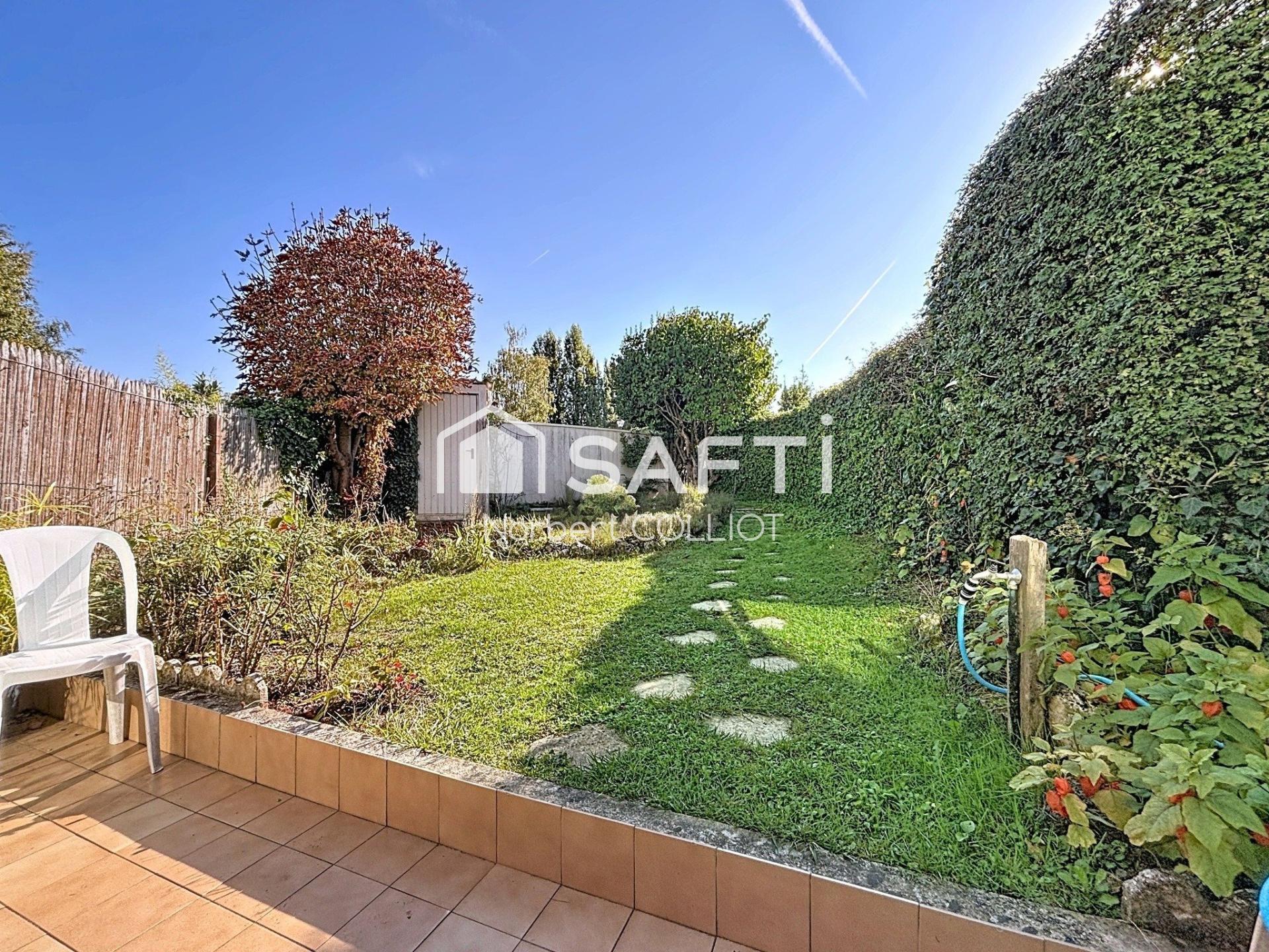 Elle est composée comme suit: une entrée avec placard, un wc séparé, une cuisine avec buanderie, un salon salle à manger donnant sur une véranda et un charmant jardin sans vis à vis.