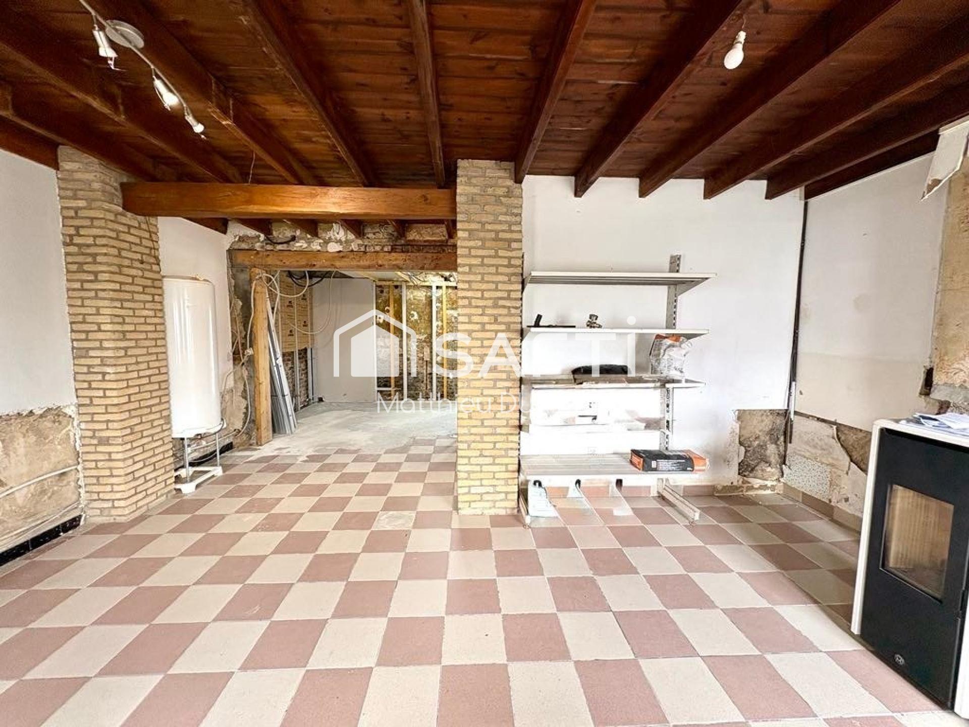 La maison est à rénover certes mais des postes importants sont déjà fait comme : la toiture, une partie de l'isolation, l'assainissement, un feu à pellet neuf, l'électricité ou toute la plomberie.