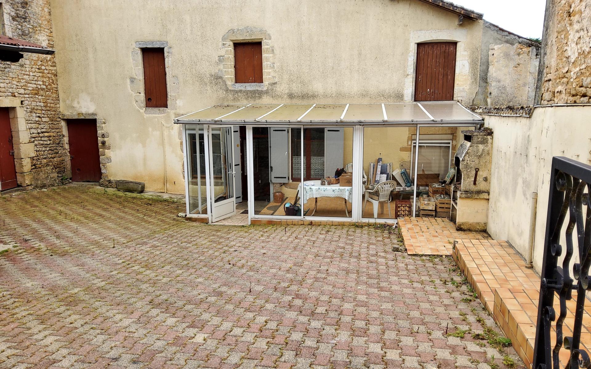 Centre bourg d’exoudun (79800), à 5 mn de la Mothe St Héray, idéal premier achat, maison en pierres proposant 121 m2 habitables de plain-pied avec 1 véranda, 1 cuisine, 1 cellier, 3 chambres, salle d’eau, wc, salon-séjour. A l’exterieur, une cour pavée, un garage, cave, hangar, grange et jardin le tout sur une parcelle d’environ 1000 m2.