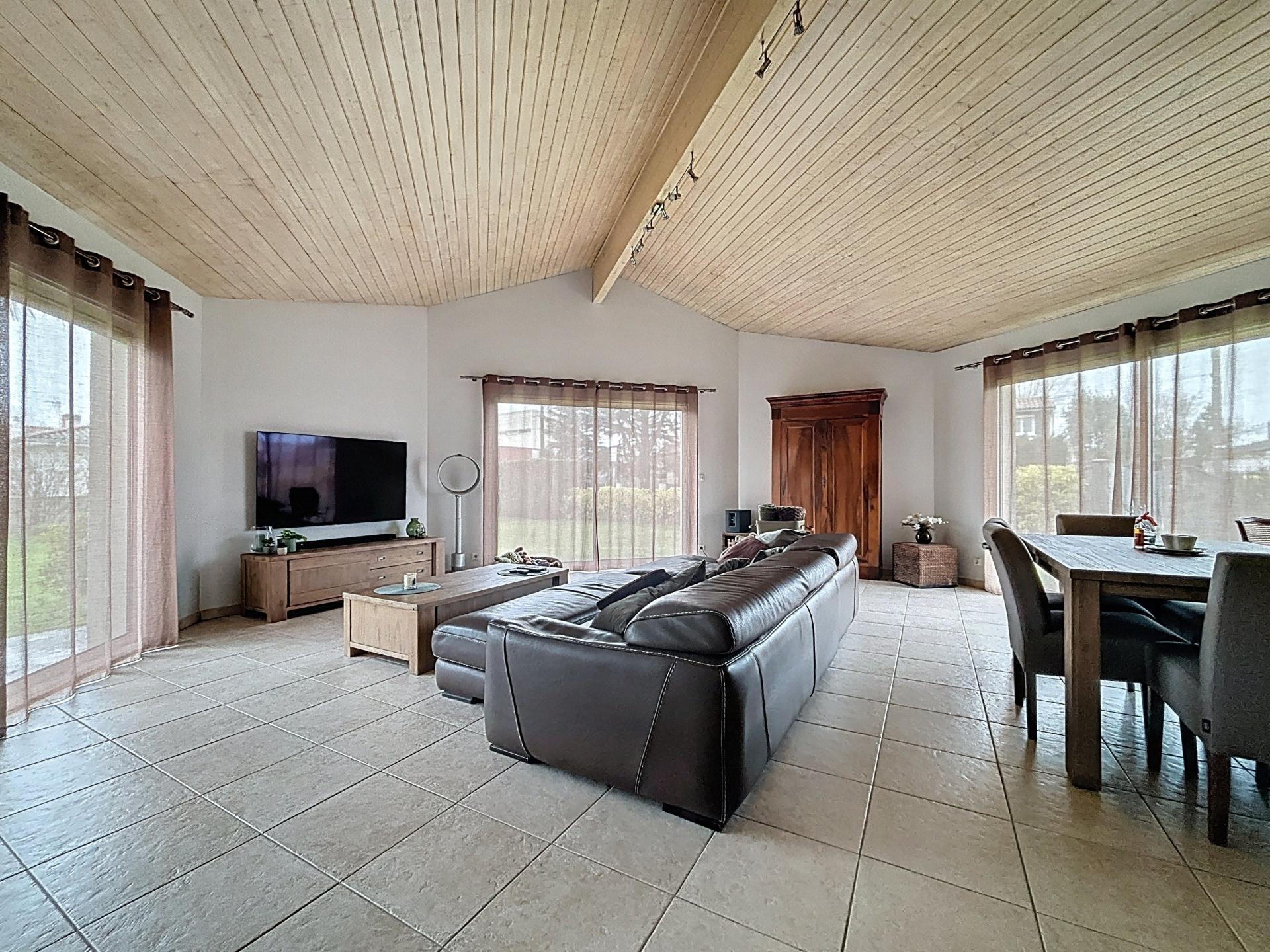 Construite en 1999, parfaitement adaptée à la vie de famille moderne, cette maison réunit les critères les plus recherchés sur le secteur : plain-pied, luminosité, volumes et environnement paisible.