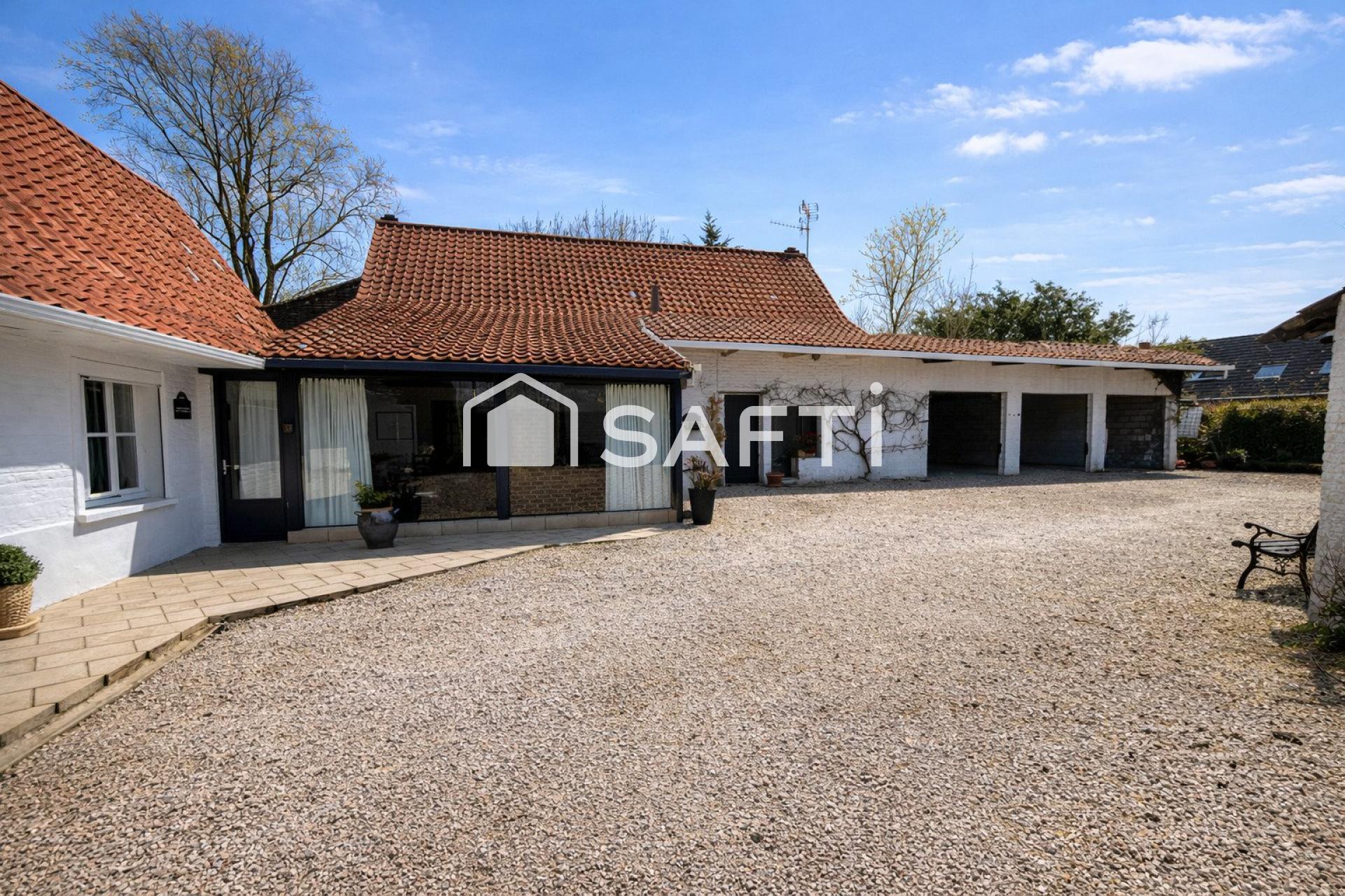L’ensemble développe un beau potentiel sur environ 10 000 m² de terrain comprenant jardin, pâture, box et dépendances, idéal pour un projet équestre.