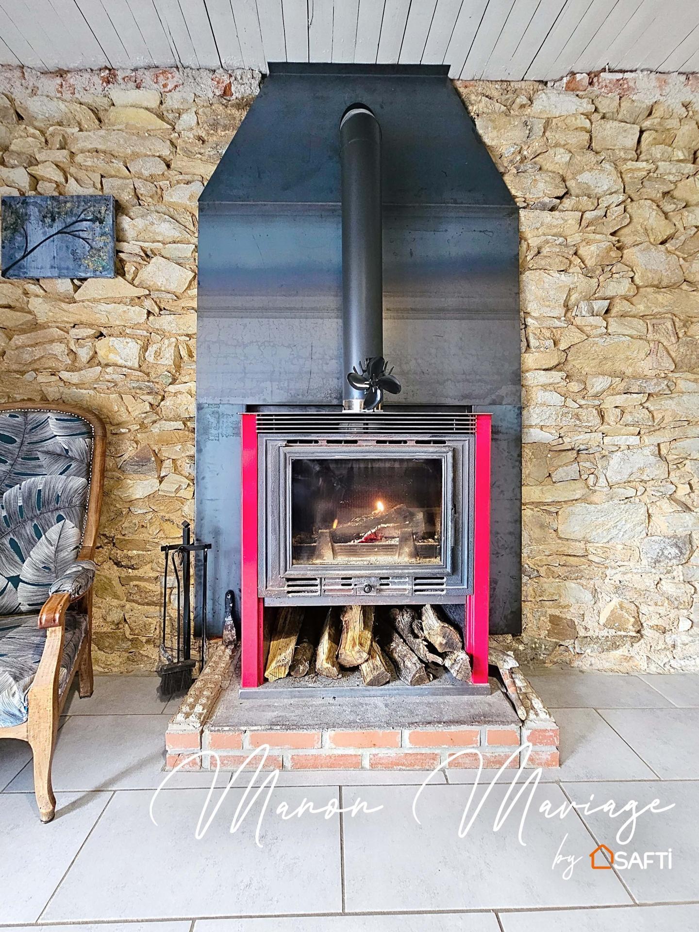 Elle offre une cuisine aménagée et équipée, un wc, une salle d’eau, un séjour avec poêle à bois et pierres