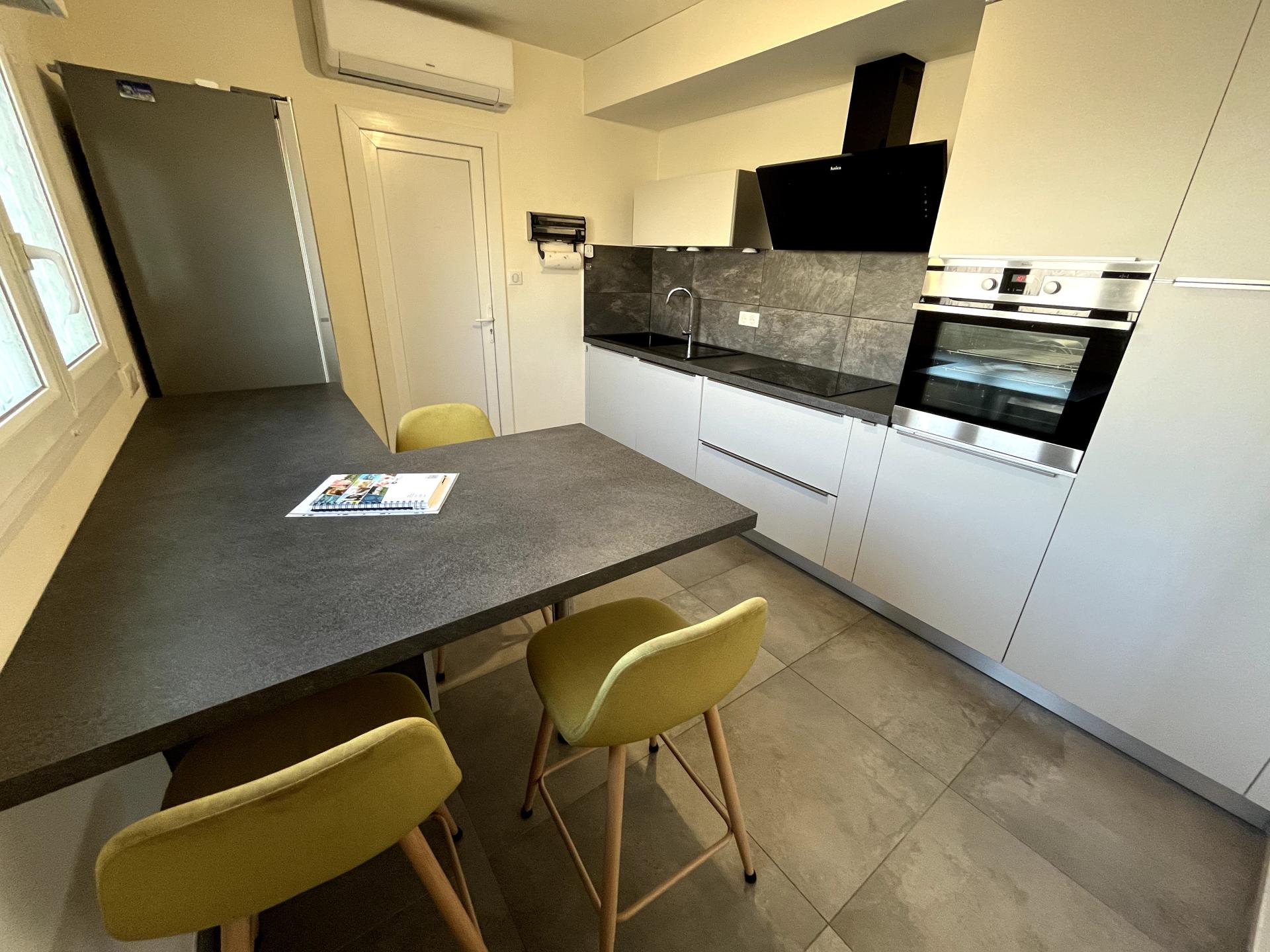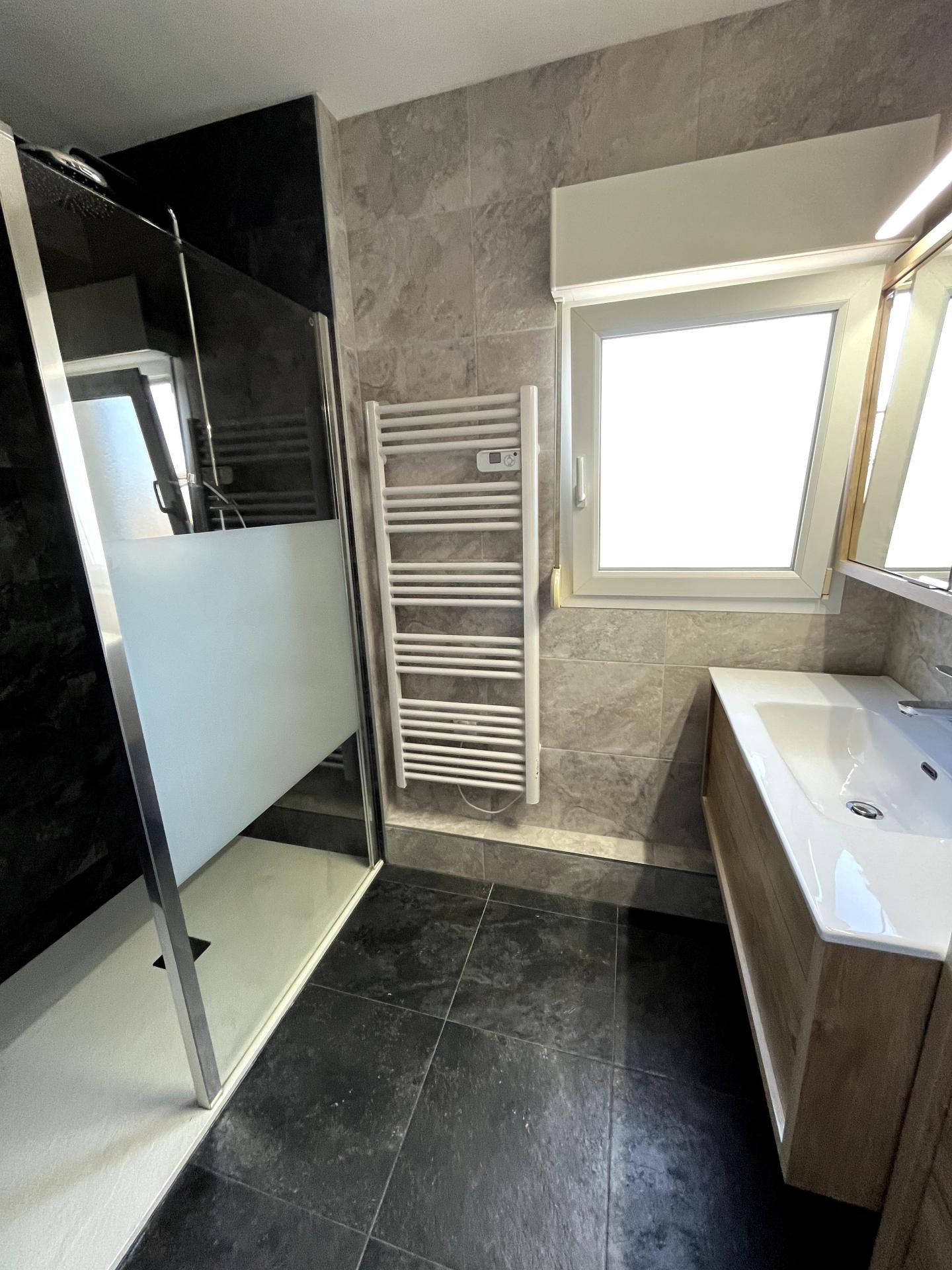 L'intérieur, rénové avec soin, propose également une salle d'eau contemporaine avec douche à l'italienne ainsi qu'un WC séparé. Quelques finitions de peinture permettrons de personnaliser les espaces selon vos envies.