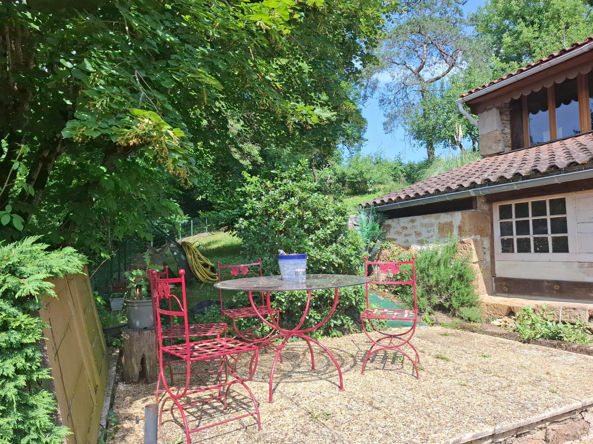 Le jardin bien entretenu ajoute une touche de verdure et de tranquillité à l'ensemble, créant un cadre bucolique pour profiter des journées ensoleillées. La terrasse invite quant à elle à des repas conviviaux en famille ou entre amis, offrant un espace extérieur accueillant et propice à la détente