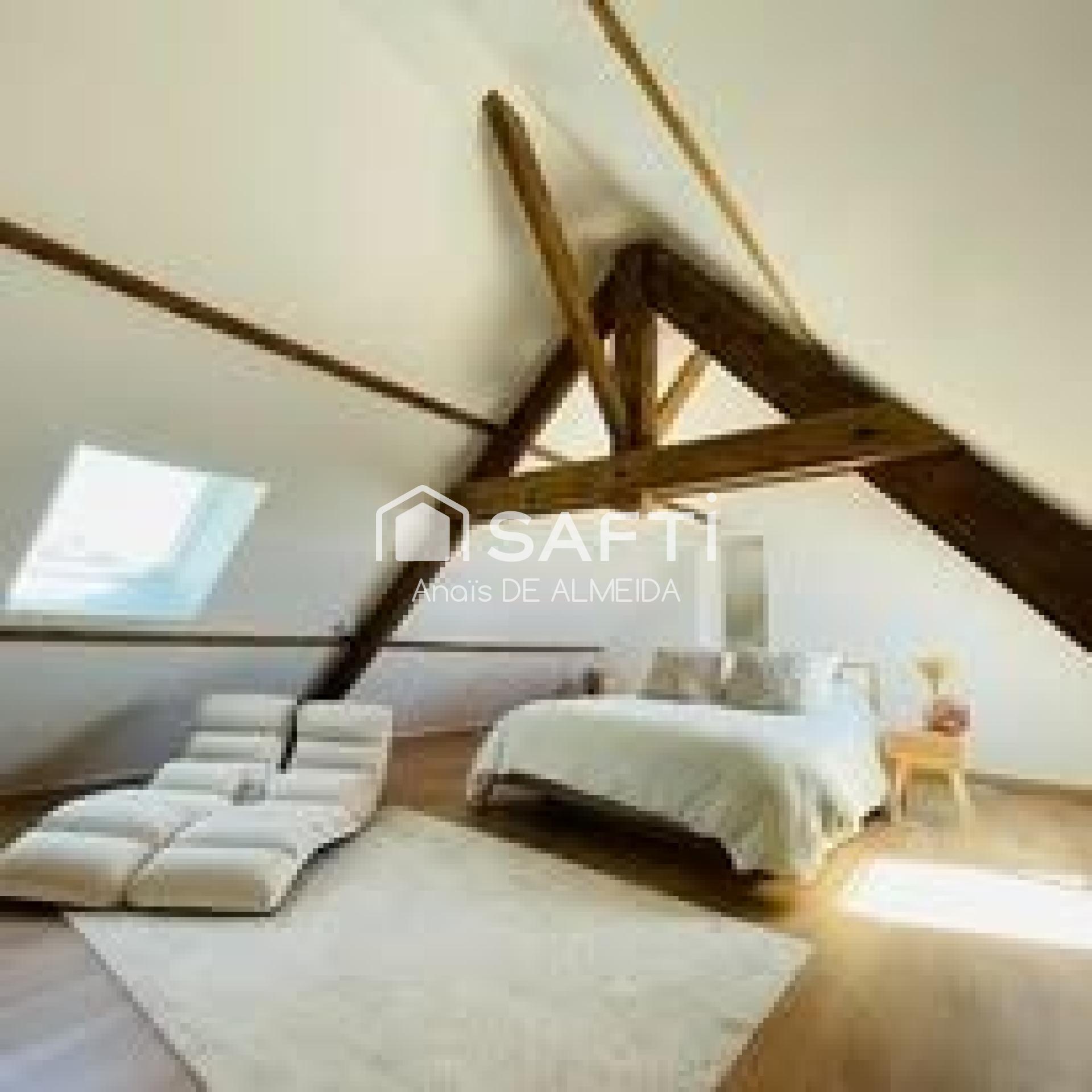 En entrant, on découvre la grande pièce de vie de 42 m²?: salon, salle à manger et cuisine ouverte, baignés de lumière. C’est un espace cosy et accueillant, idéal pour partager des repas, se détendre ou recevoir. Sur ce même niveau, un cabinet de toilette pratique et l’accès direct à la grange de plus de 65 m² viennent compléter l’espace, offrant mille possibilités?: atelier, garage, suite supplémentaire, cuisine d’été ou même un espace détente avec jacuzzi. La hauteur sous faîtage de près de 8 mètres confère à ce lieu une impression d’ampleur et de liberté rare.