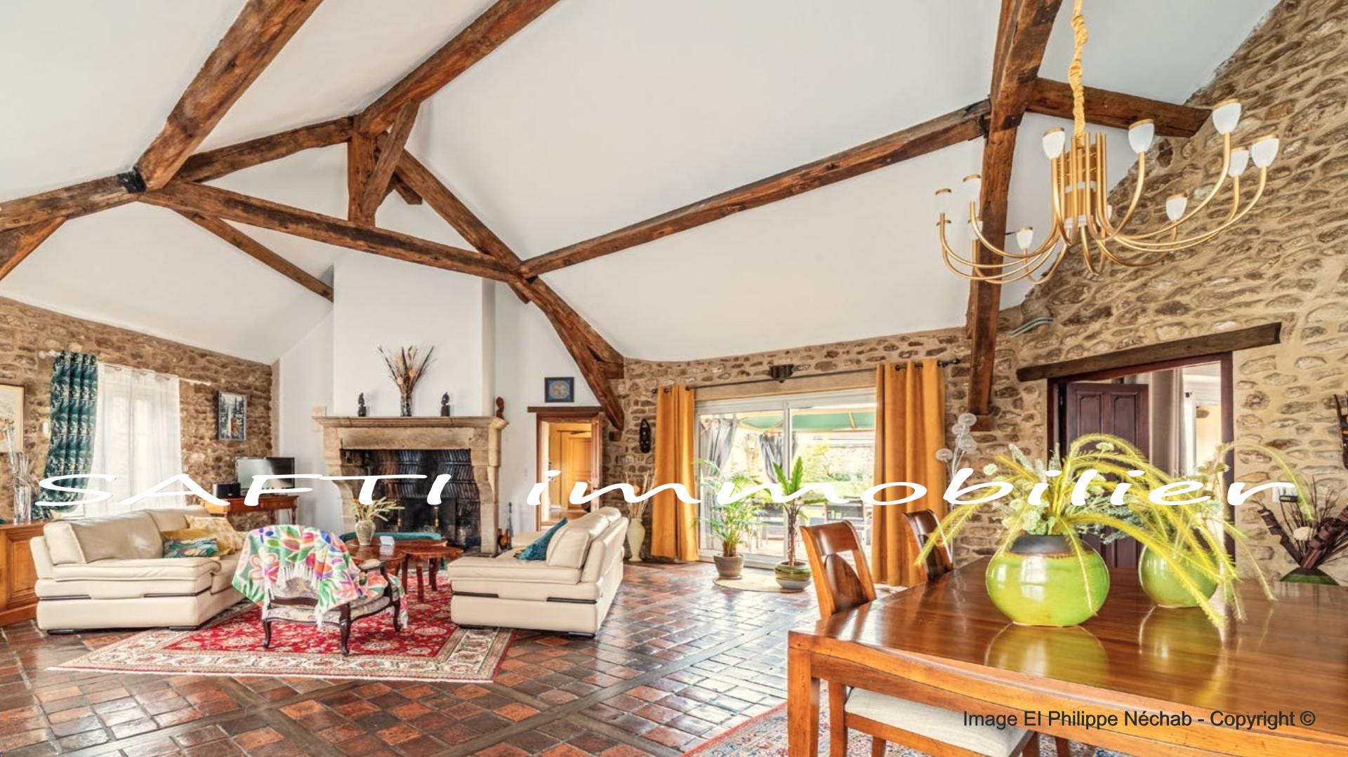 Maison de charme en pierre avec 298m2 habitables, 5 chambres, 3wc, 3 salles d’eau, jardin clos et paysagé .