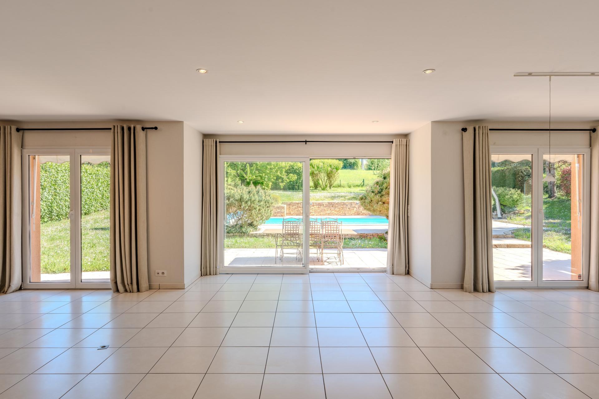 La pièce de vie est lumineuse et ouverte sur l’extérieur, la cuisine s’intègre naturellement dans l’ensemble, et plusieurs chambres dont une suite parentale permettent d’accueillir une famille dans de bonnes conditions.