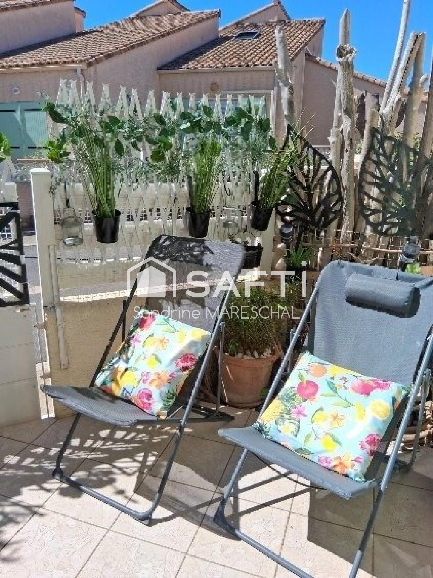 Situé à Saint-Pierre-la-Mer, station balnéaire de Fleury (11560), ce pavillon bénéficie d'un emplacement privilégié entre mer et campagne, offrant ainsi un cadre de vie paisible et authentique. Dans l'enceinte de la résidence, la présence d'une piscine constitue un véritable atout pour se détendre et se rafraîchir.