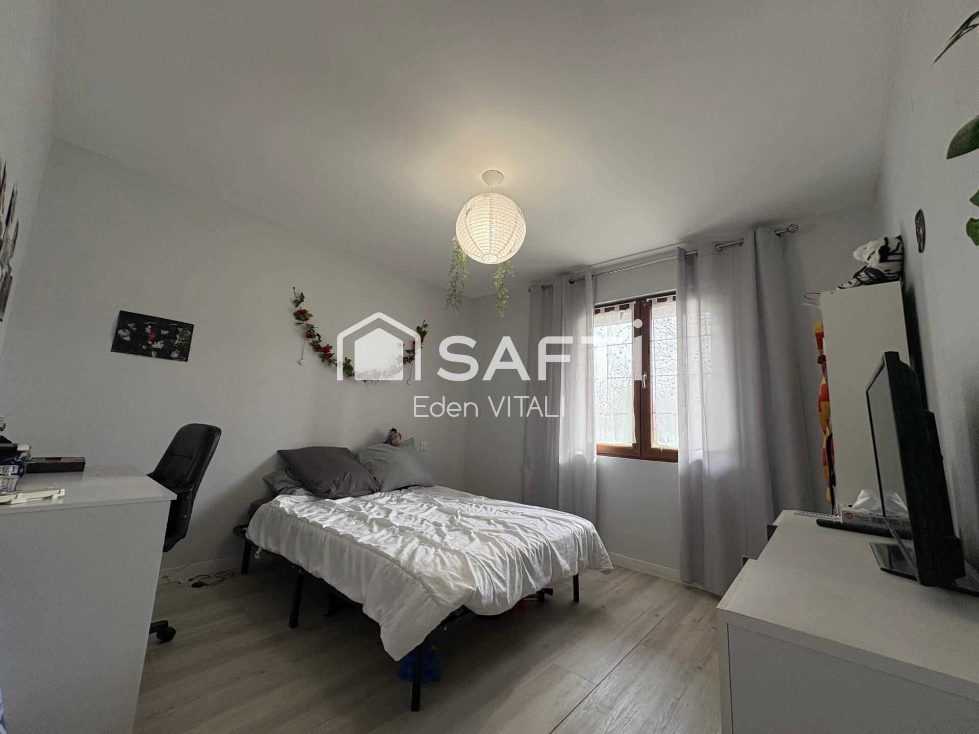 Maison individuelle de 120 m2, 3 chambres, grande pièce à vivre, beau jardin avec terrasse.