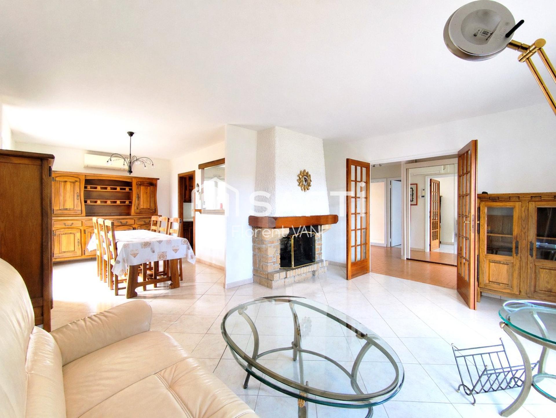 Cette habitation d'une surface de 105m² vous propose en son rez-de-chaussée de plain pied, une entrée ouvrant sur le séjour avec sa cheminée et sa baie vitrée, donnant sur un balcon et semi ouvert sur la cuisine. Ce niveau vous propose aussi la salle de douche, des toilettes ainsi que deux belles chambres.