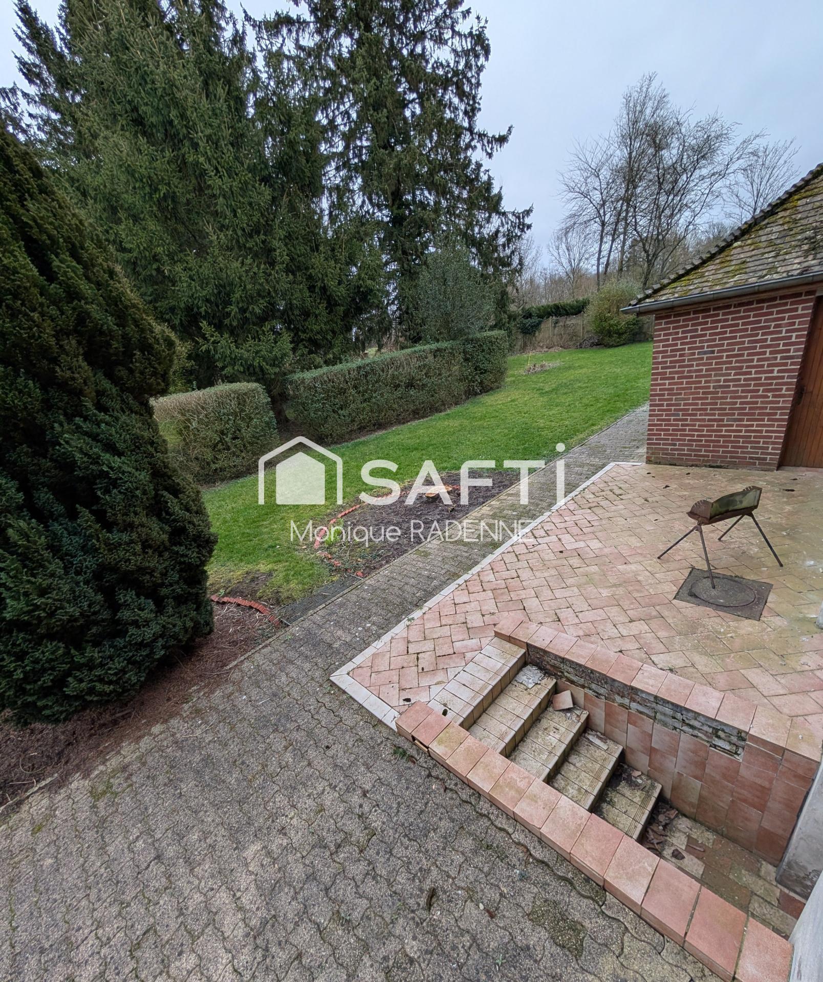 Maison individuelle en briques sur terrain clos et arboré de 1200 m² environ.