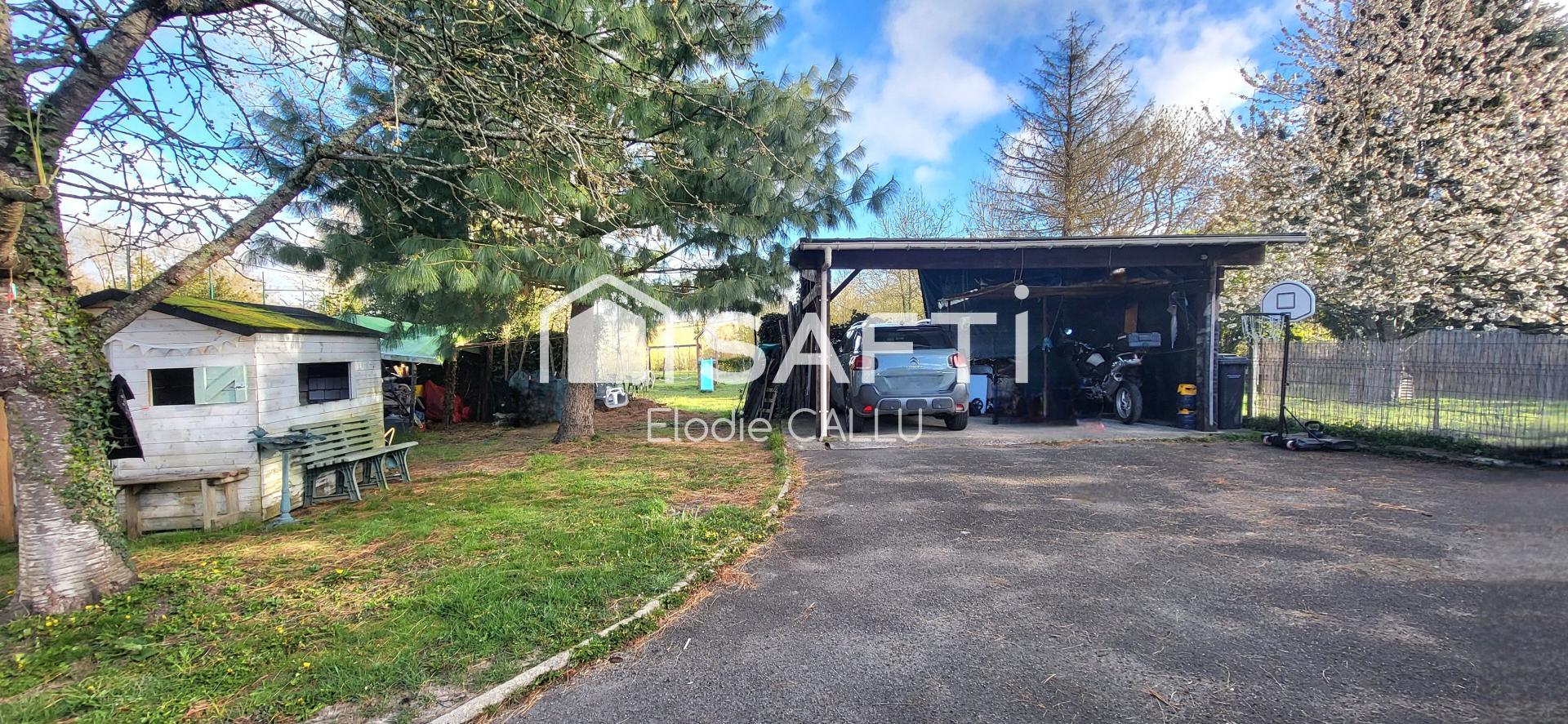 3 chambres, salon avec insert, cuisine équipée, dépendance aménageable, terrain arboré de 3000 m² avec fruitiers et carport.