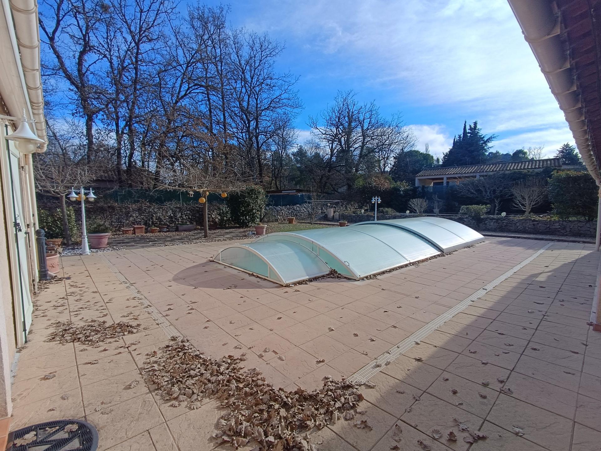 Pensée pour le confort et la convivialité, la propriété se compose de deux logements distincts, harmonieusement reliés par une spacieuse véranda faisant office de salon et salle à manger. Baignée de lumière grâce à ses grandes baies vitrées, elle s’ouvre sur de belles terrasses et une piscine couverte, offrant un cadre de vie idéal en toute saison.
