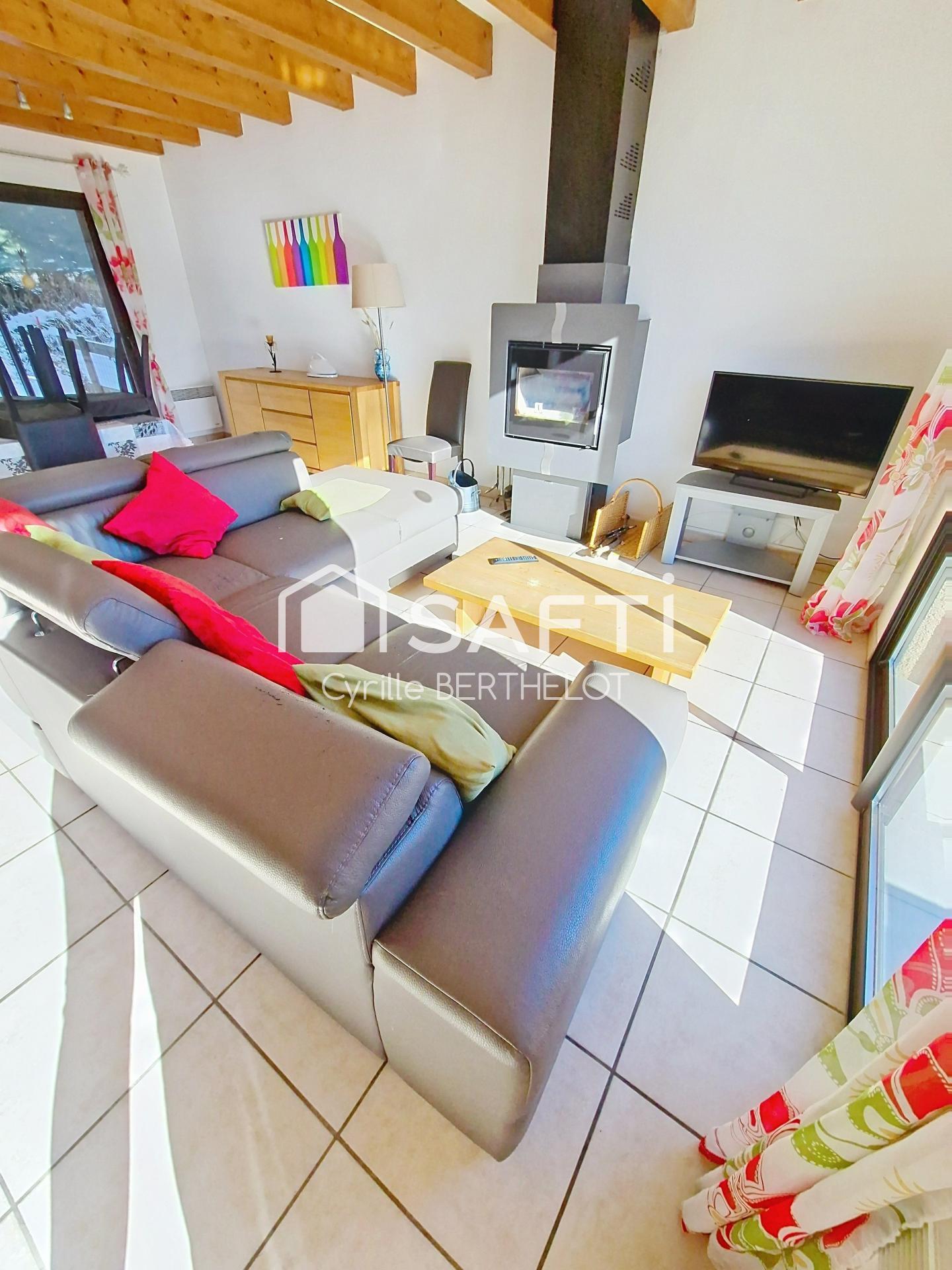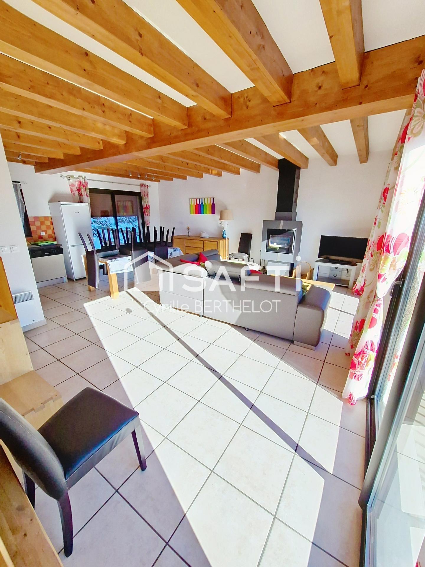 Construite en 2000, cette maison mitoyenne coche toutes les cases : pratique, lumineuse, agréable à vivre, dans un environnement montagnard privilégié, à deux pas des commodités et des activités de plein air.