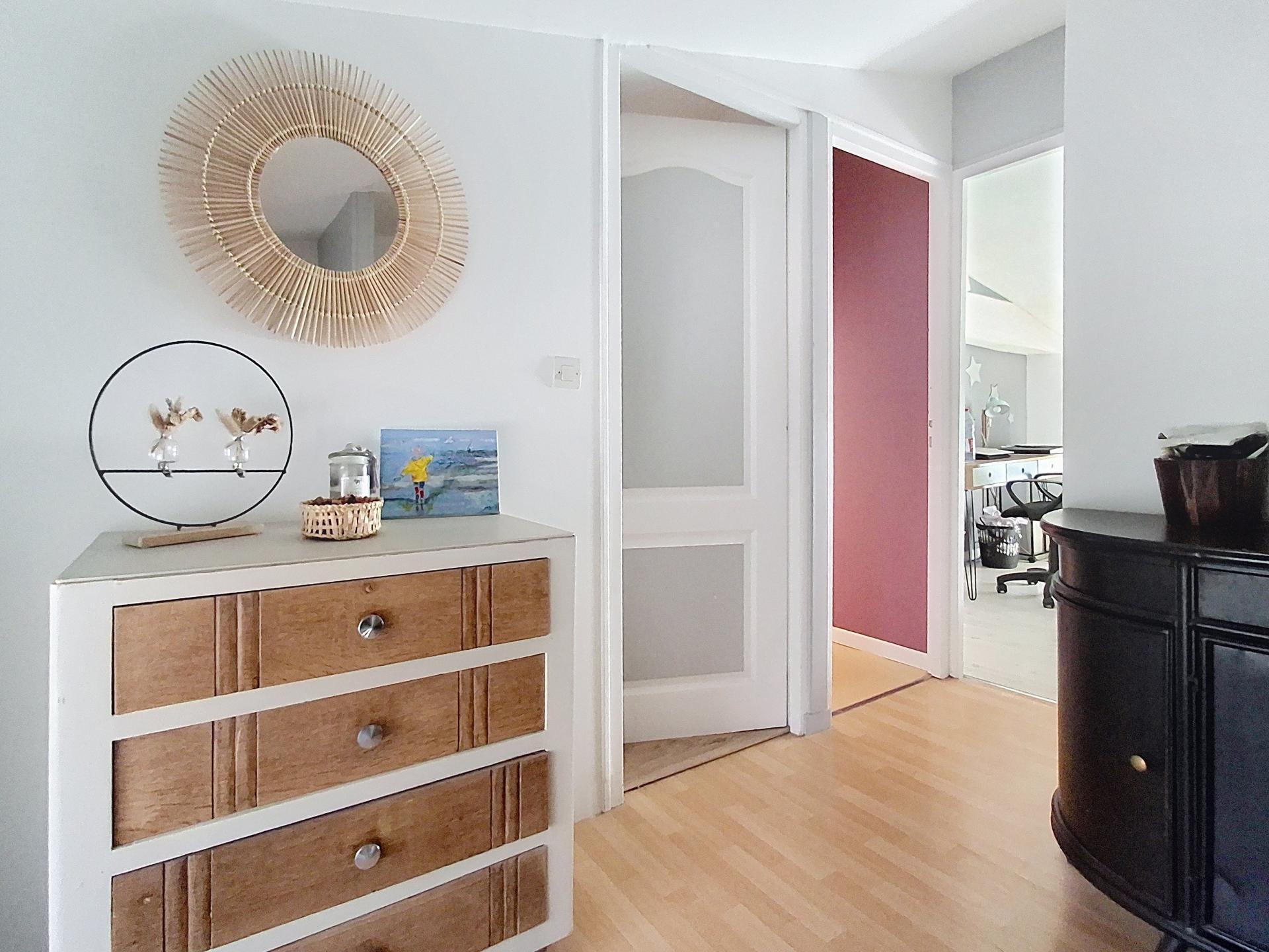 À l’étage, le palier dessert une salle d’eau avec WC, entièrement rénovée il y a un an, ainsi que trois chambres, dont deux avec placards intégrés.