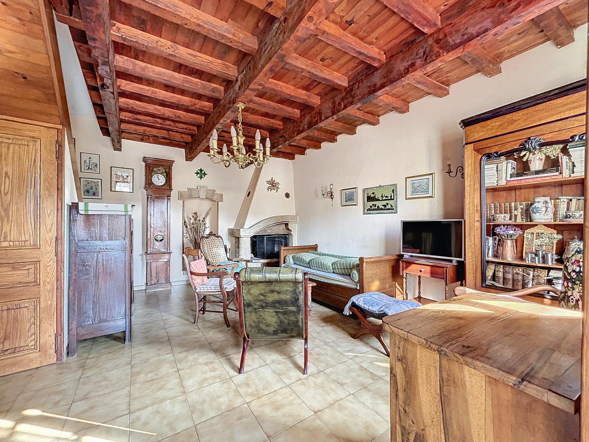 Elle comprend également une terrasse couverte de 25m² avec coin barbecue, un jardinet de 20/25m² donnant sur la ruelle ainsi qu’un ancien pigeonnier cadastré.