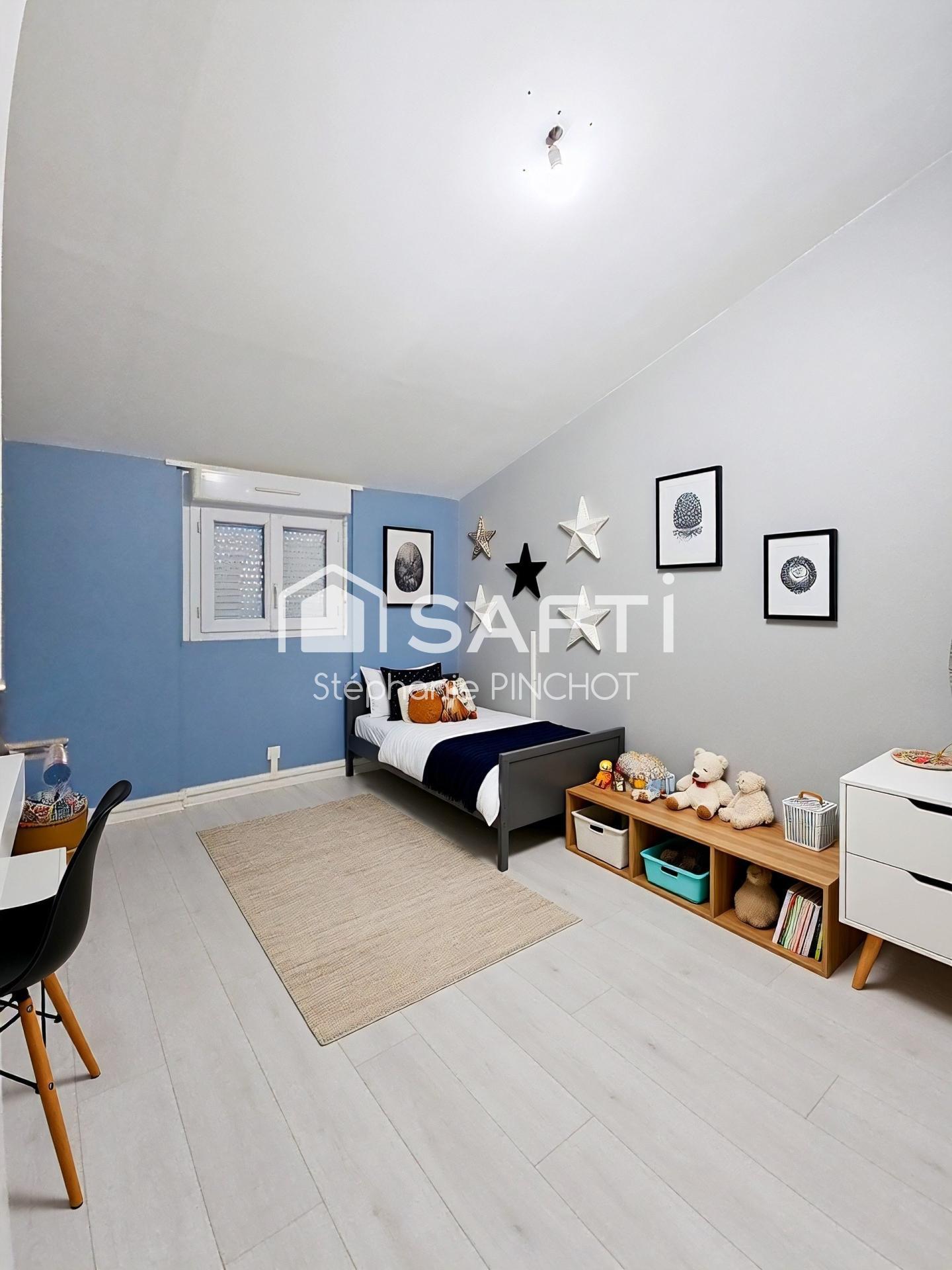 Le deuxième étage offre un palier desservant trois chambres avec placards et une salle de bains avec baignoire, lavabos et WC intégrés. Les sols en parquet et carrelage ajoutent une touche de modernité, tandis que les fenêtres en double vitrage assurent une isolation phonique et thermique de qualité. Plus qu'à y déposer vos valises !