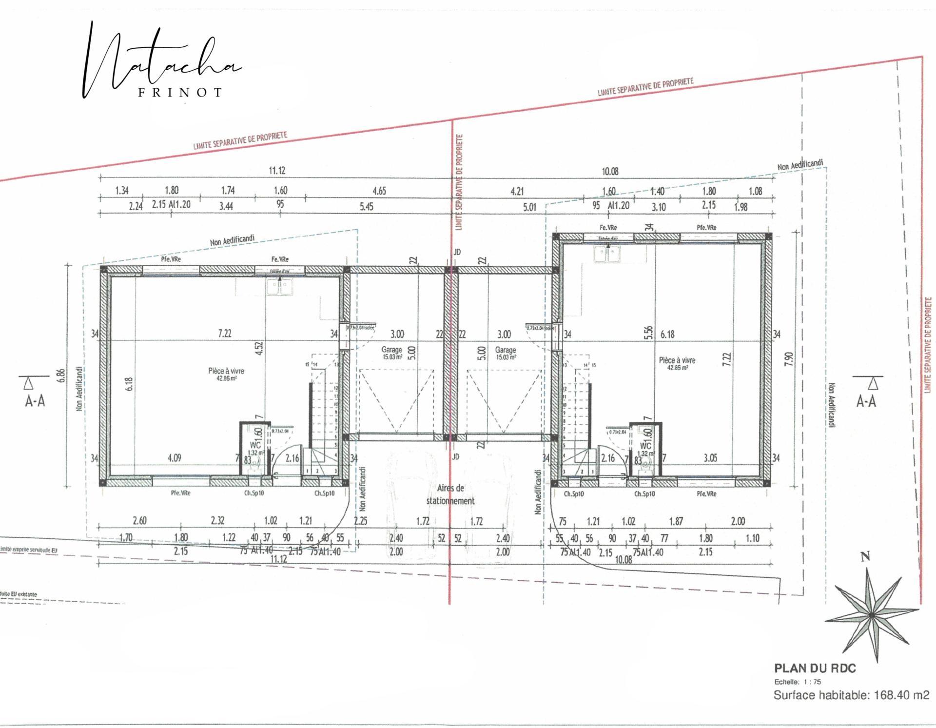 Édifié sur une parcelle d’environ 858 m², cet ensemble développe environ 170 m² habitables au total, répartis sur deux maisons indépendantes, chacune disposant de son propre accès.