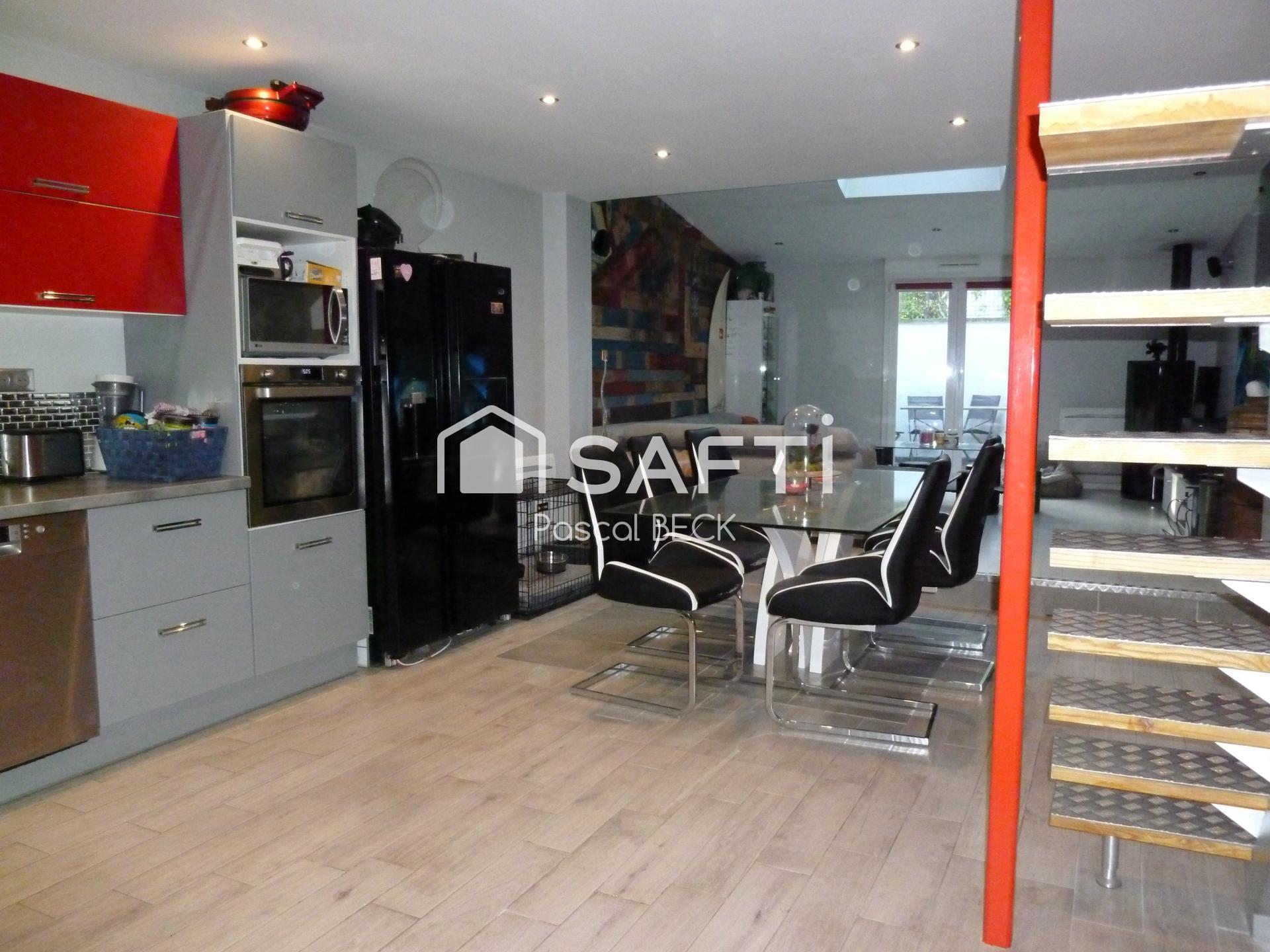 Dans un quartier calme et proche de toutes commodités, venez découvrir cette maison mitoyenne rénovée avec goût de 86 m2. Elle se compose au rez de chaussée d'une entrée ,d'une belle pièce vie lumineuse de 44 m2 avec cuisine équipée ouverte sur salon-séjour, un accès direct sur une terrasse non privative mais à jouissance exclusive, un accès depuis la cuisine au Garage avec porte motorisée et à une grande cave. A l'étage, un palier distribue 2 grandes chambres de 16 et 17 m2, un wc indépendant et une salle d'eau. Classée C au niveau DPE, elle se distingue par des prestations de qualité offrant un véritable confort, une bonne isolation générale, des menuiseries à triple vitrage, des volets électriques, une VMC.