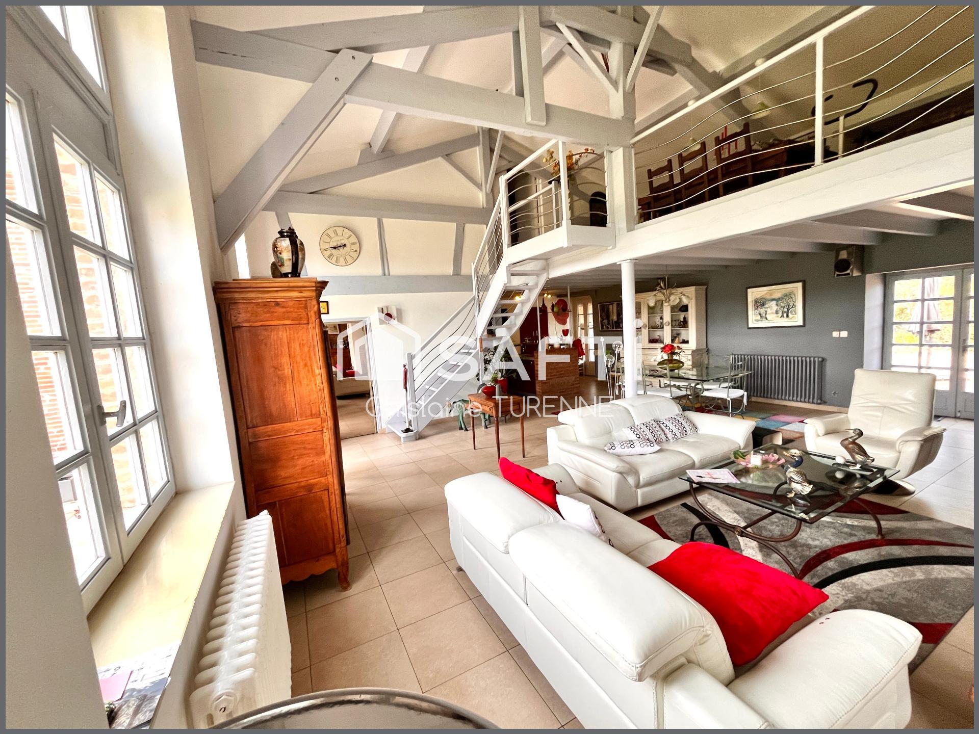 ° Un bel espace de vie déplafonné grande cheminée, espace bureau et mezzanine ouverte