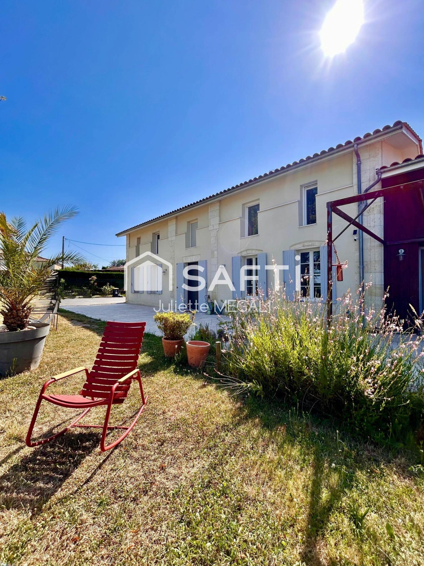 Située à 15' au nord de Libourne, dans un environnement paisible et résidentiel, découvrez cette magnifique demeure en pierre de 1920, entièrement rénovée avec des prestations haut de gamme, implantée sur un terrain clos et sans vis-à-vis d’environ 3 000 m².