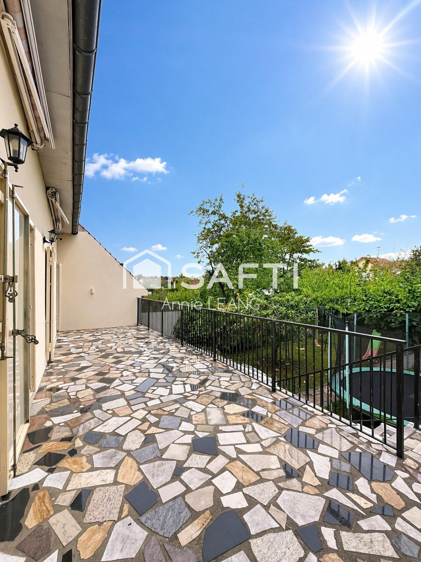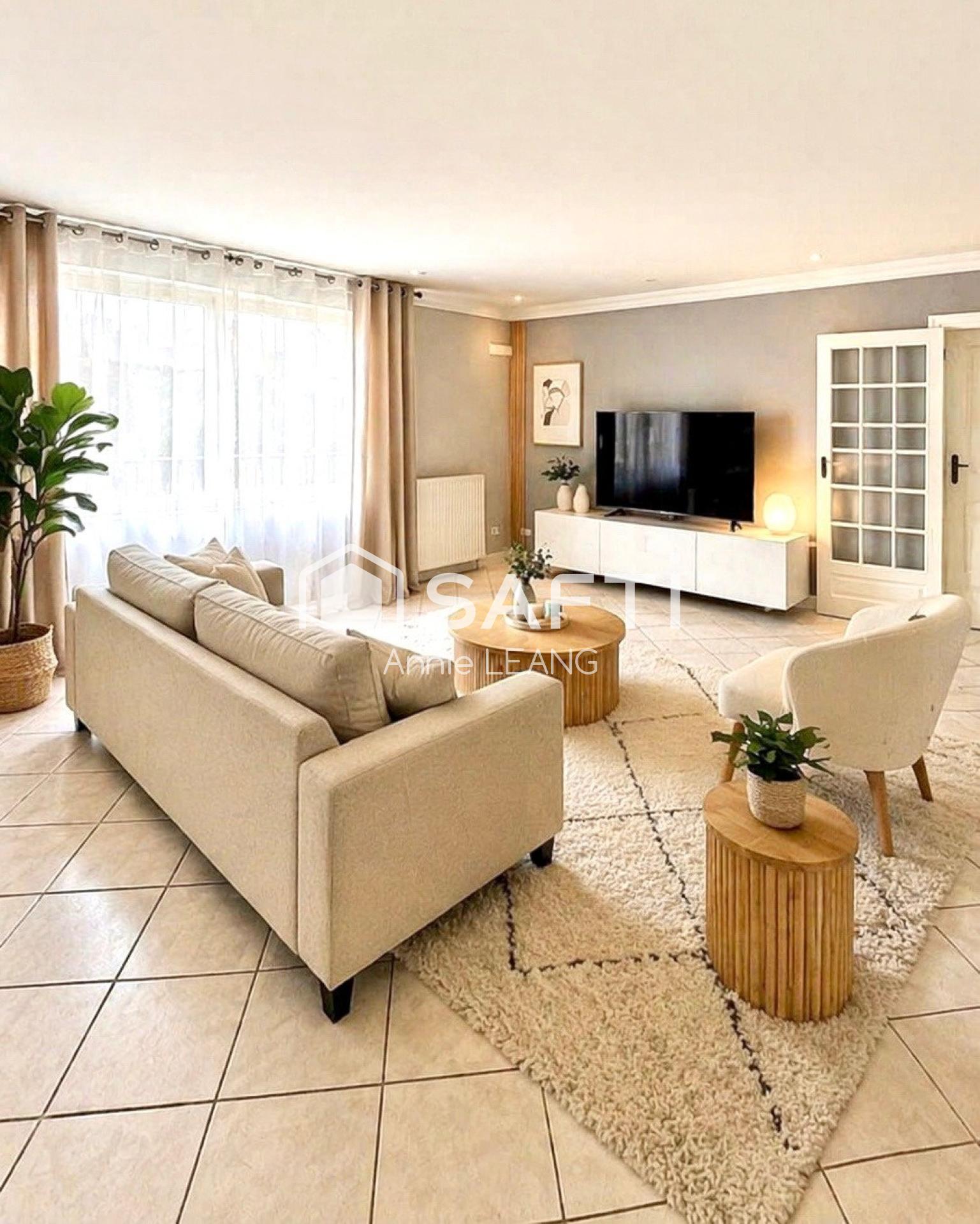 Quartier de la Croix Buard. Située dans un quartier pavillonnaire paisible de Garges-lès-Gonesse, cette élégante maison individuelle de 1991 développe 200 m² habitables (218 m² au sol) sur un terrain de 446 m² avec 220 m² de jardin arboré, sans vis-à-vis. Classée DPE B/A, elle offre confort énergétique et luminosité.
