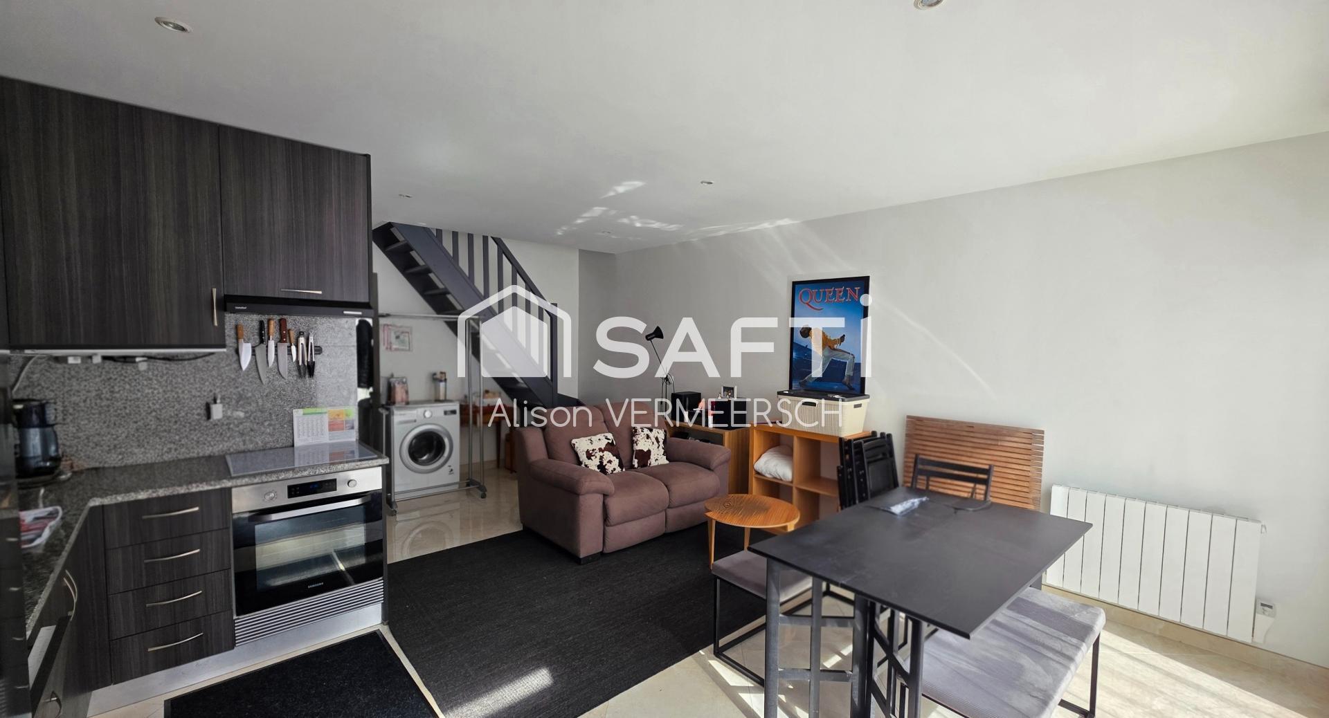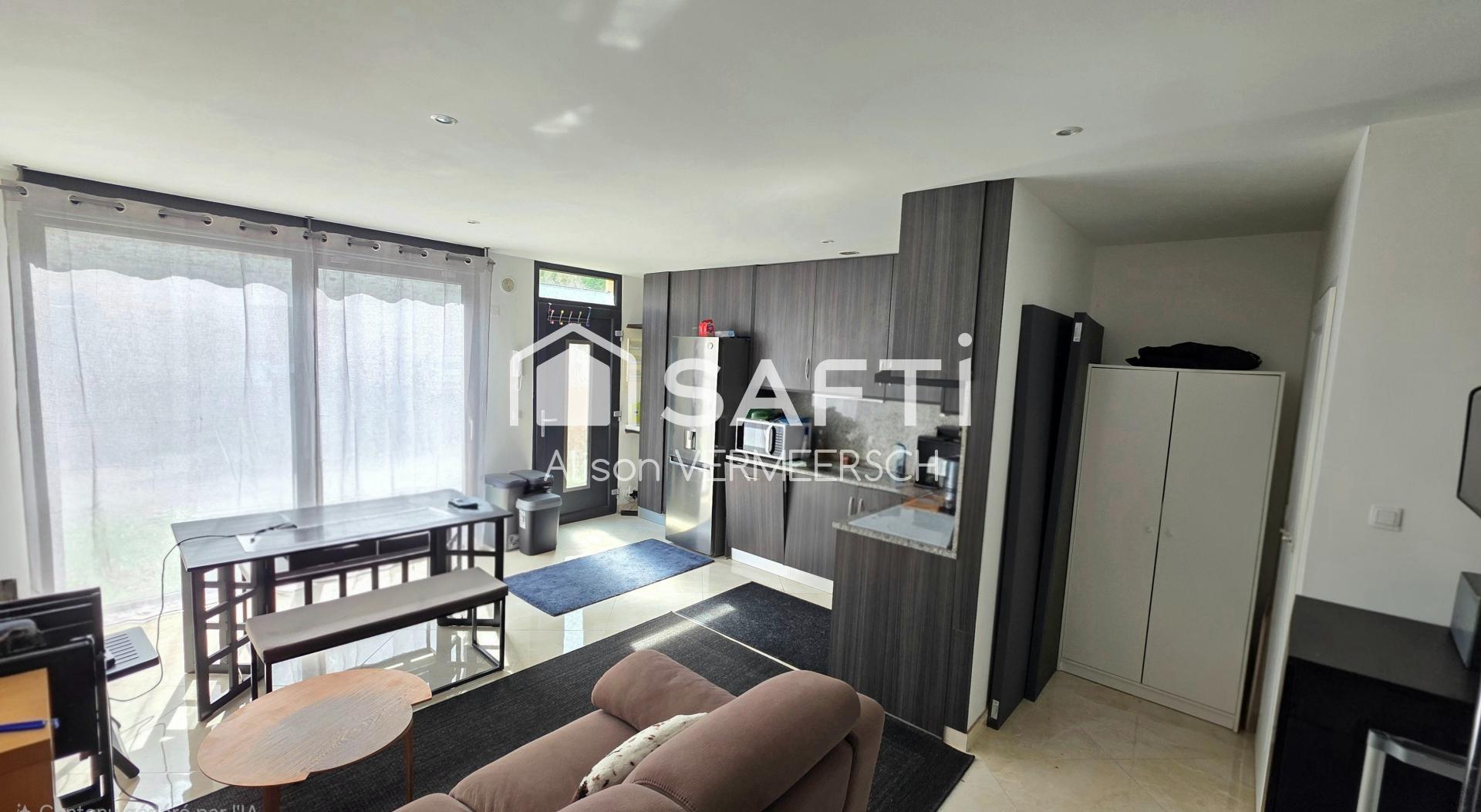 À l'extérieur, la maison mitoyenne rénovée en 2020 se distingue par son style contemporain. La petite copropriété assure une harmonie visuelle agréable, et l'année de construction récente promet une structure en parfait état.