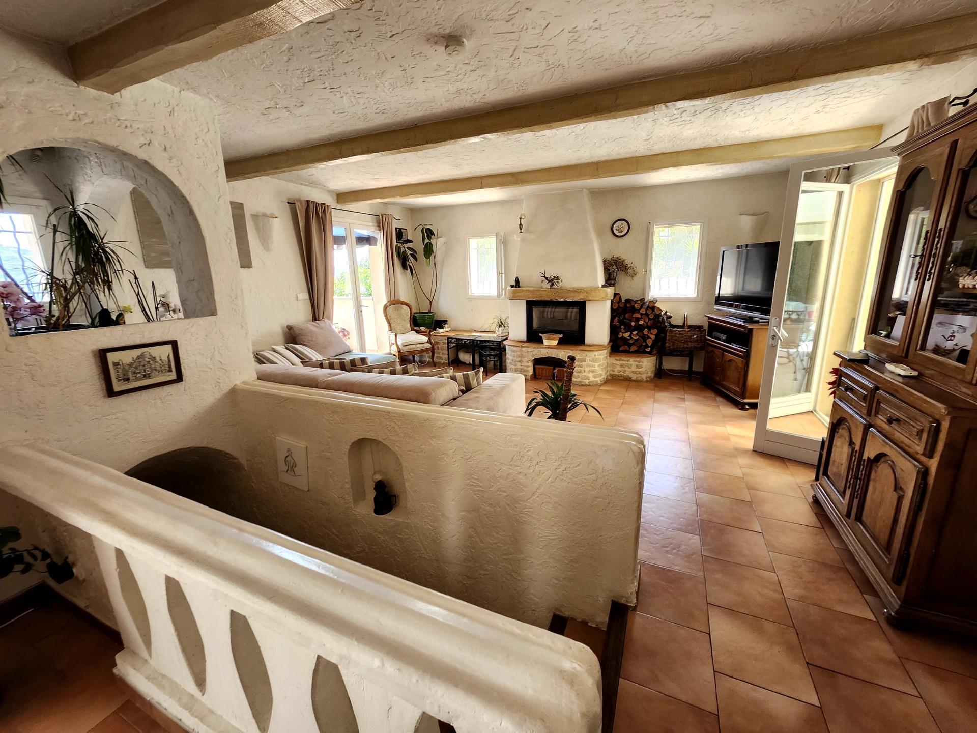 RDJ : Un bel espace à vivre climatisé le salon avec sa cheminée. Cuisine séparée.