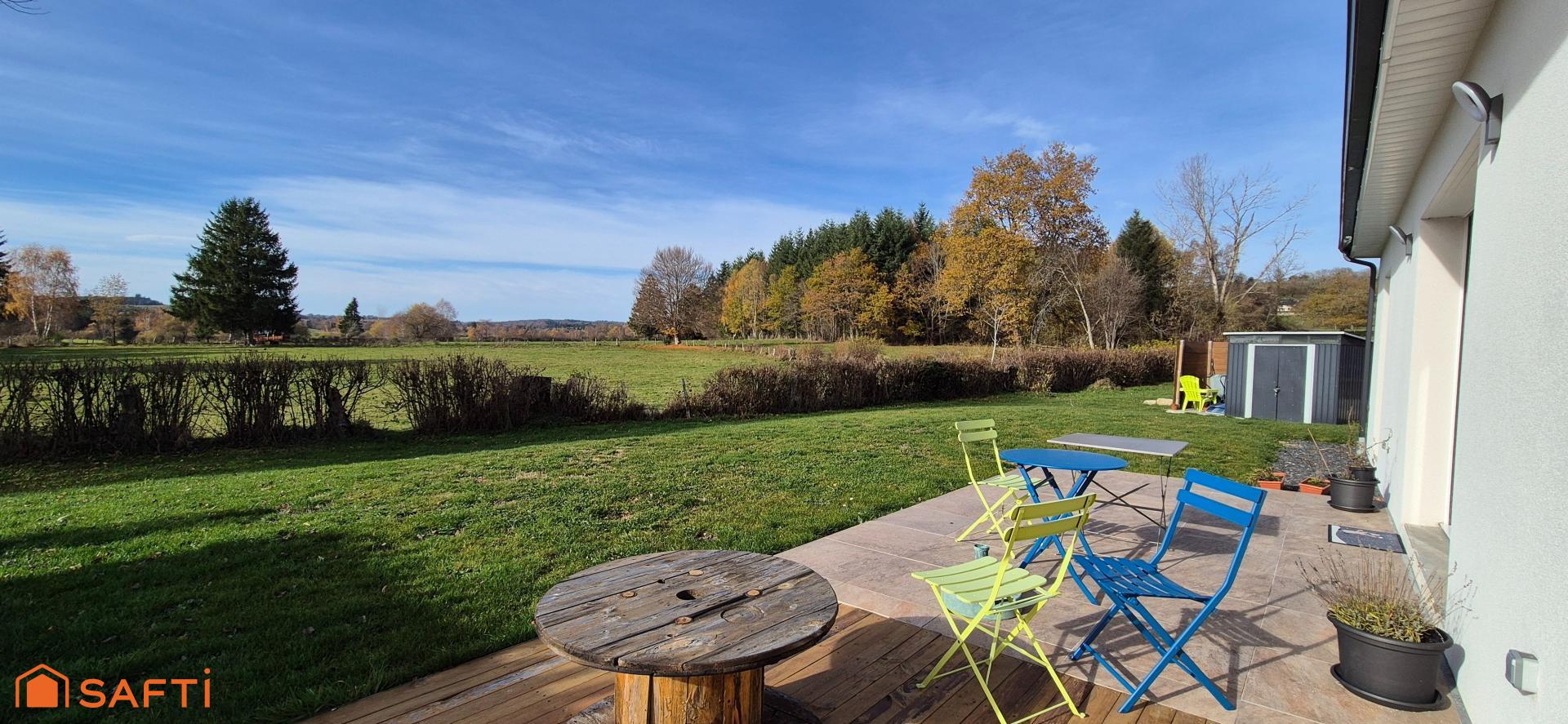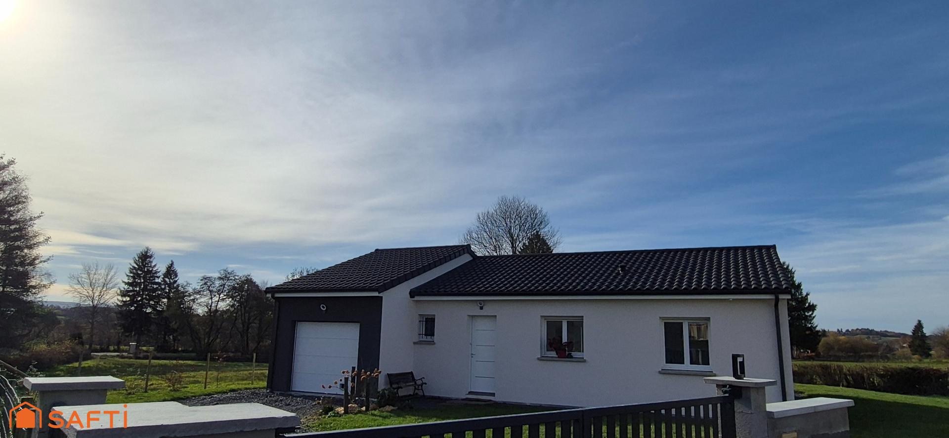 Située au calme dans un village avec commerces, écoles, médecins et pharmacie, à seulement 40 minutes de Clermont-ferrand, au fond de l'impasse d'un lotissement sur une parcelle de 730 m2 arborée et close avec portail motorisé, je vous propose cette belle maison T4 de 2023 entièrement achevée et très bien conçue avec sa lumineuse pièce de vie de plus de 40 m2 avec vue sur la nature.