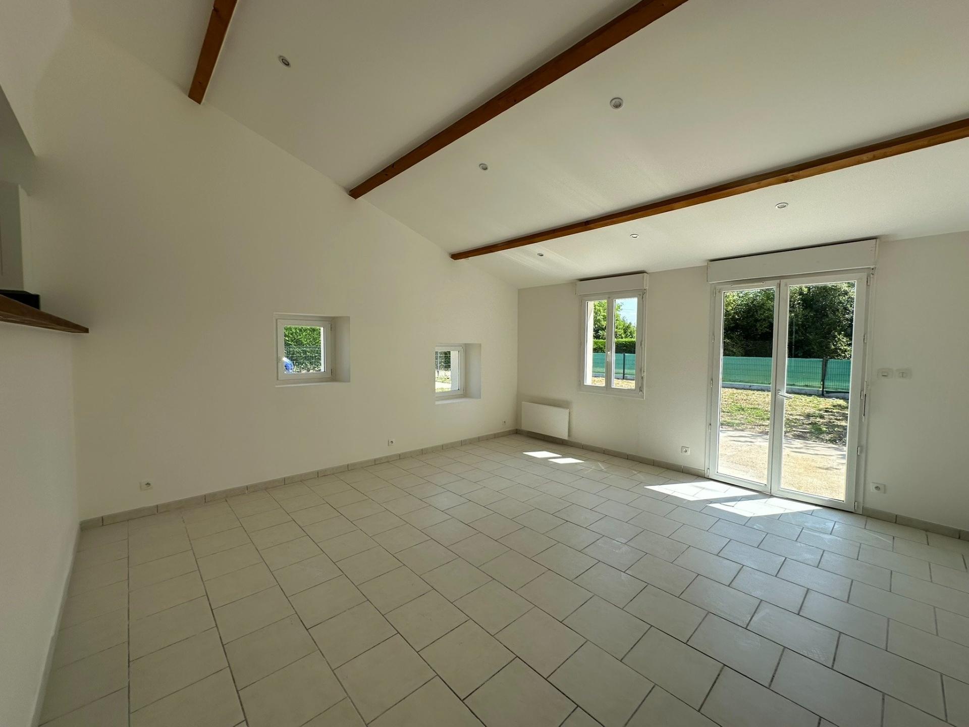 Maison 71 m², 3 pièces, 2 chambres, un bureau, terrasse, jardin, stationnement.