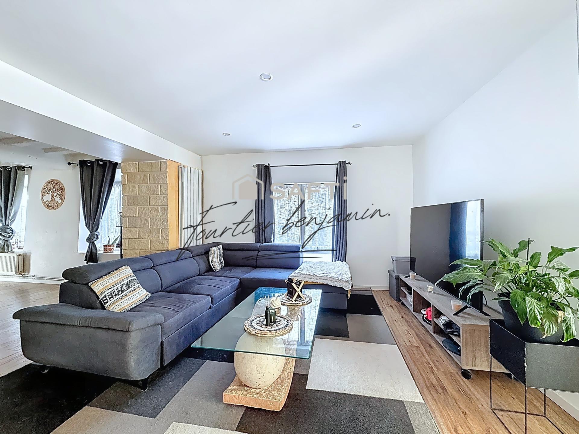 Cette maison d’environ 112 m², implantée sur une parcelle de 487 m², offre des espaces chaleureux et bien agencés. Au rez-de-chaussée, vous découvrirez une entrée sur cuisine aménagée, un salon / salle à manger convivial avec poêle à bois, une salle de bain, une salle d’eau avec WC, un jardin d’hiver lumineux ainsi qu’un garage.