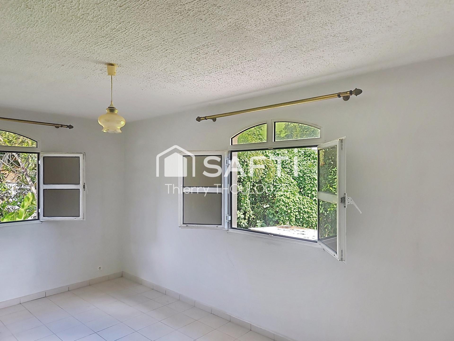 À l'extérieur, cette maison s'étend sur un terrain de 4214 m² partiellement clôturé, offrant intimité et espace. Avec un jardin arboré, un bassin, une cour bétonnée, une terrasse en U, et un espace cuisine extérieur, elle propose des espaces de détente, parfait pour profiter du climat tropical de la région.