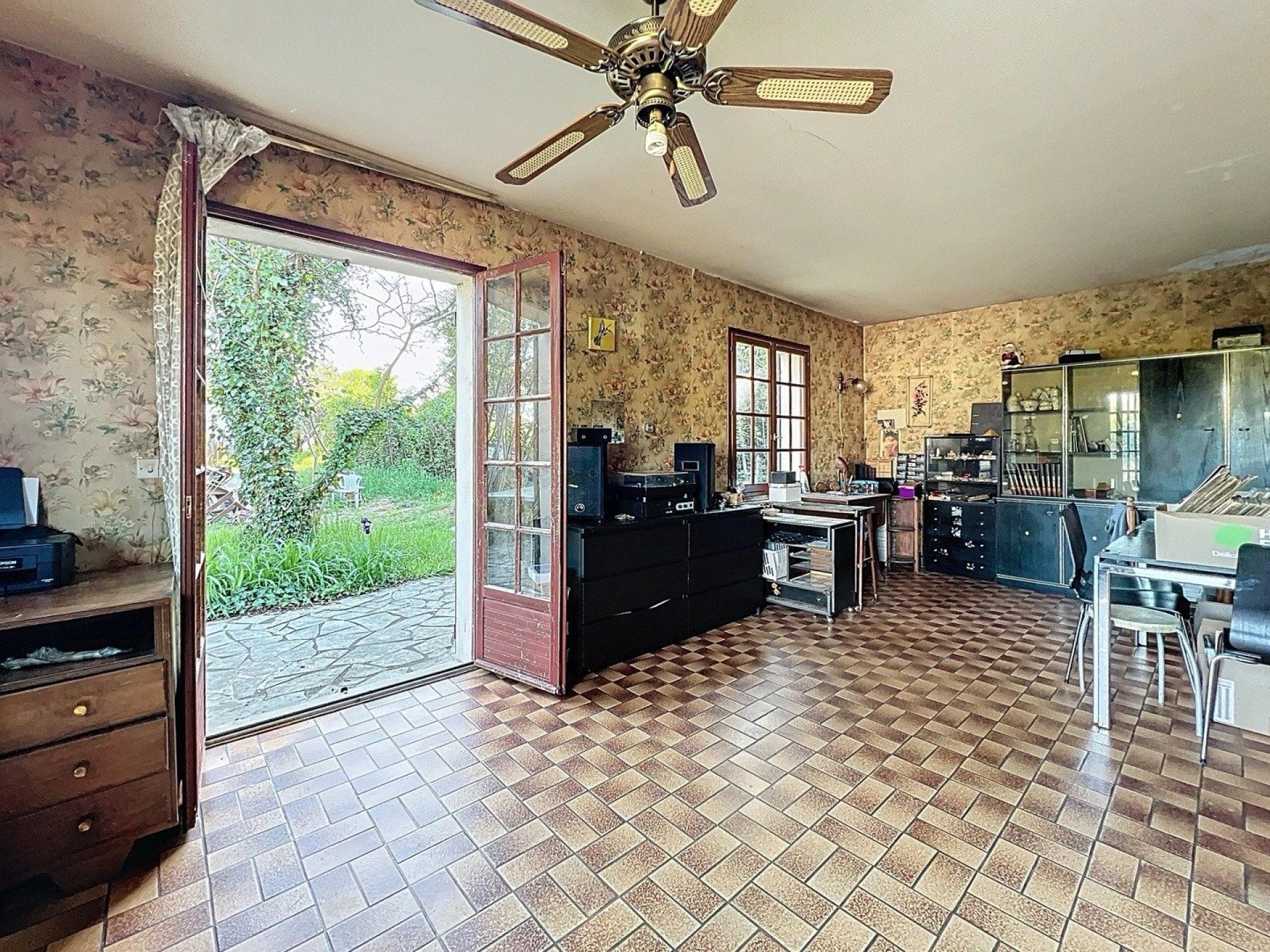 Il accueille actuellement une maison de plain-pied d’environ 109 m² avec studio indépendant et garage attenant, à rénover dans son intégralité.
