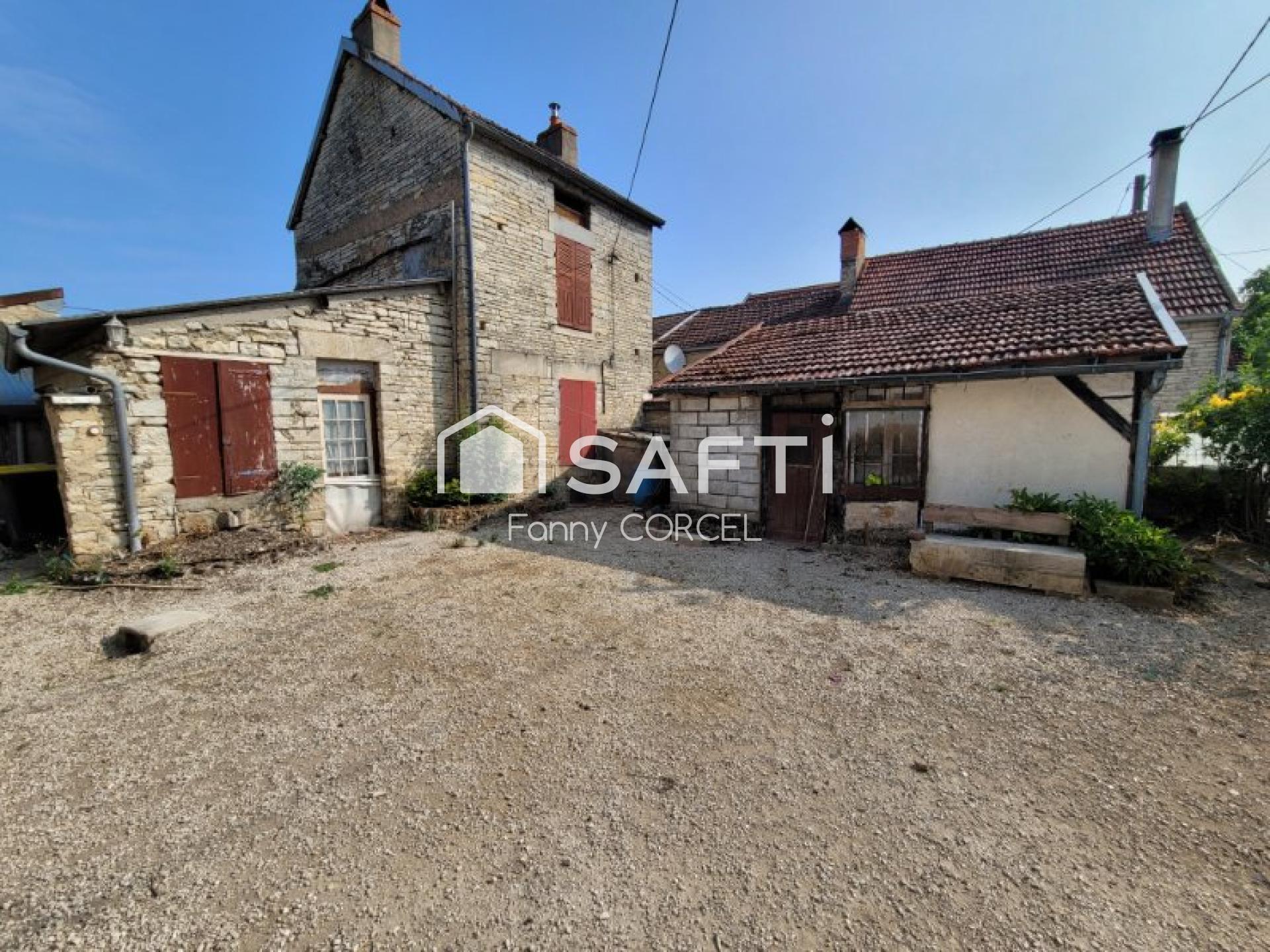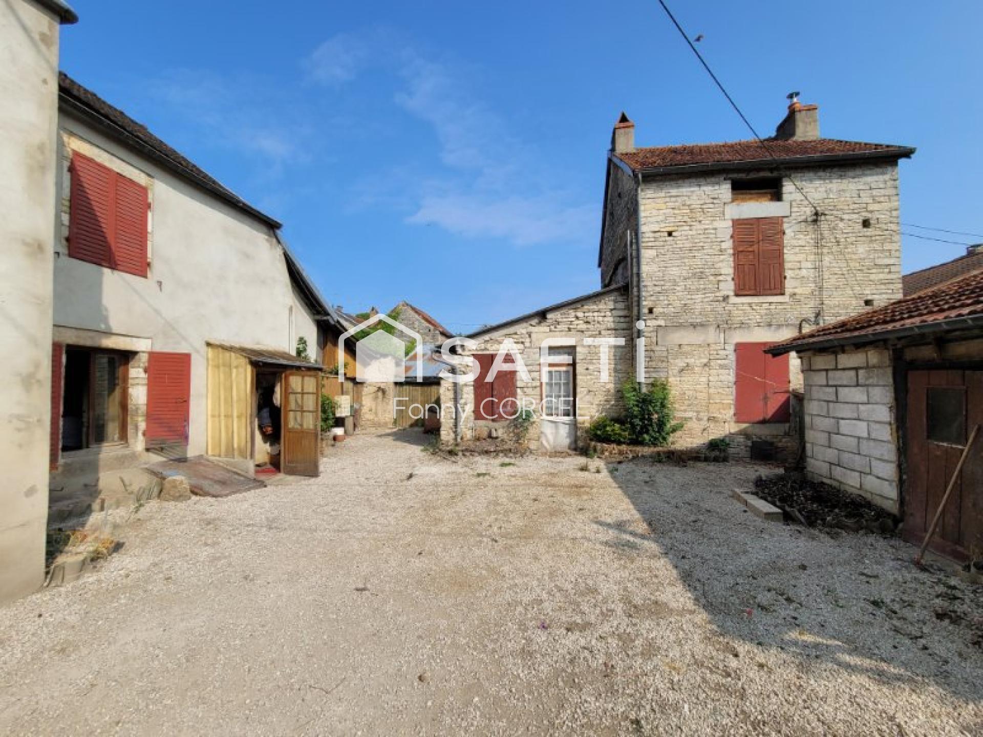 Dans charmant village de Côte d'Or, en limite de l'Aube, sur une parcelle fermée de 413m², venez découvrir cet ensemble immobilier comprenant une cour desservant deux maisons à usage d'habitation, petite dépendance (chambre à four) avec wc, nombreux appentis à usage de garage, chaufferie, bûcher, poulailler et atelier. Jardin. Première maison, habitable (90m²) comprenant au rez-de-chaussée, entrée sur séjour, cuisine séparée avec coin douche, salle à manger, wc séparé et dégagement. Au premier étage, deux chambres en enfilade. Cave voûtée sous partie. Chauffage centrale au fioul et cuisinière à bois dans le séjour. Deuxième maison à rénover (60m²) comprenant au rez-de-chaussée entrée par cellier puis cuisine/séjour. Au premier étage, dégagement et une chambre. Grenier sur l'ensemble. Cave voûtée sous partie. Assainissement collectif. Gros œuvre en bon état. Maisons anciennes authentiques en pierres avec cheminées, dalles de Bourgognes... Compteur électrique indépendant pour chaque maison. Idéal pour création de deux gîtes indépendants avec extérieurs individuels possibles ou maison d'habitation et création d'un gîte pour complément de revenus. A voir rapidement !!