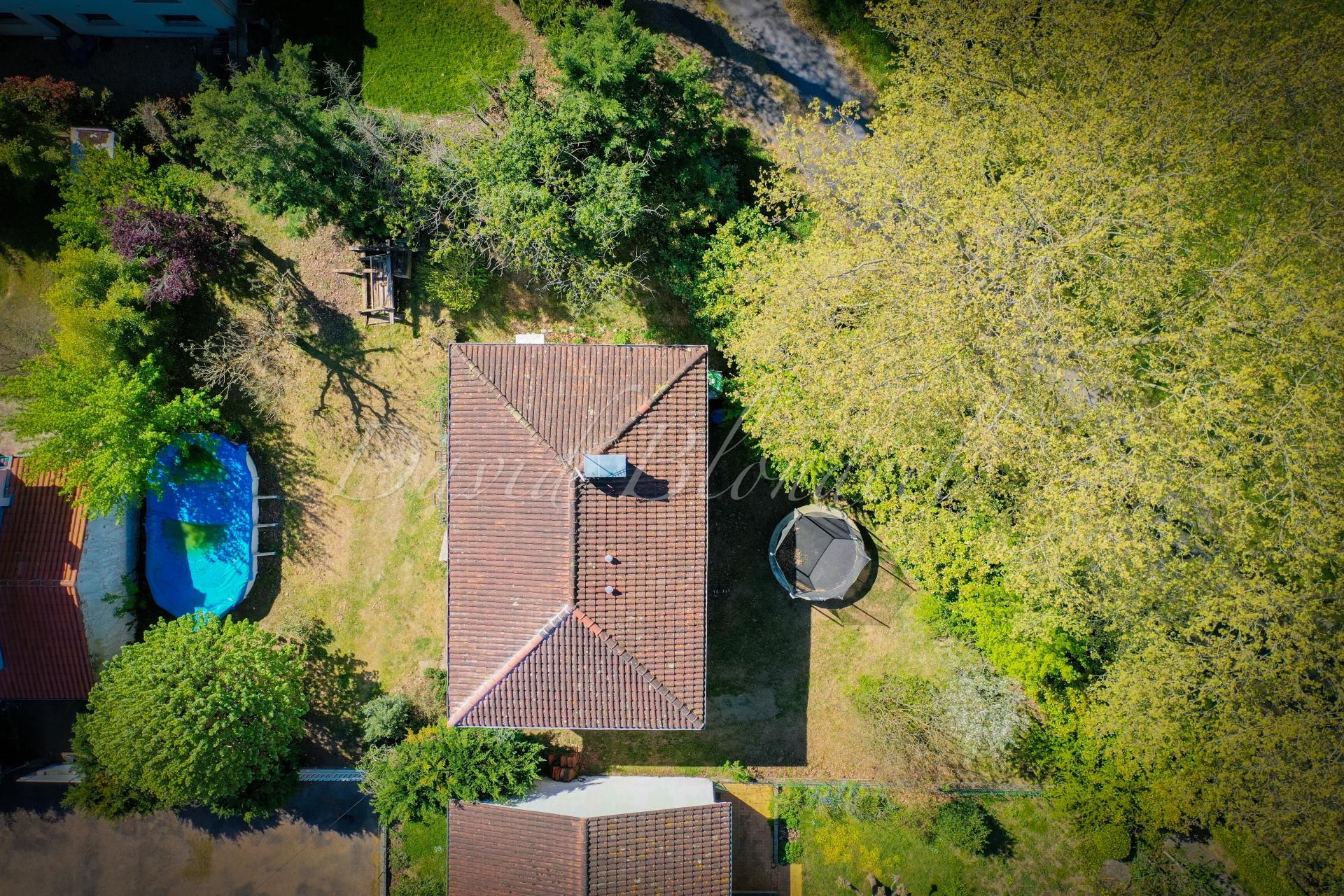 Coté extérieur : la parcelle fait environ 800m2, la piscine hors-sol est comprise dans la vente.